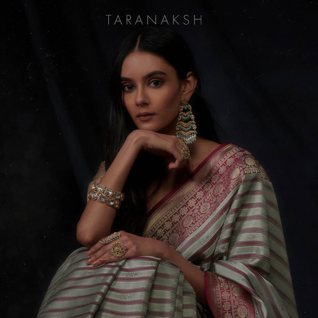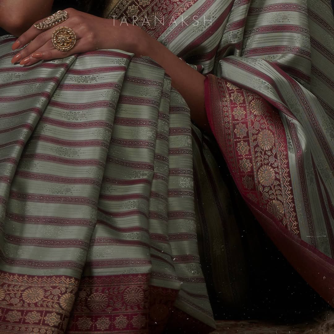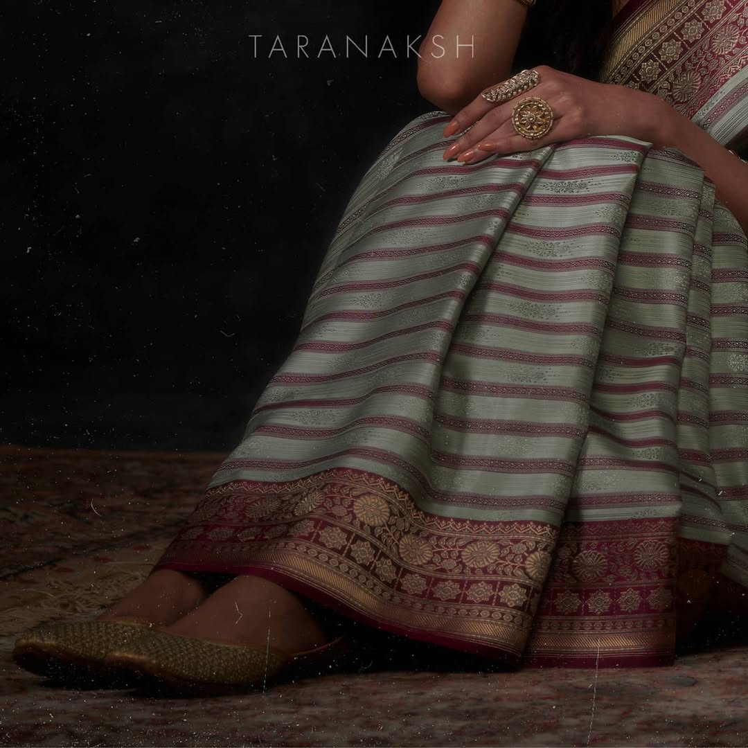 The “Aakruti” Pure Banarasi Silk Saree is a contemporary take on timeless tradition, featuring an elegant stripe pattern woven on luxurious pure silk. Handcrafted in Varanasi, this saree blends classic weaving techniques with a modern aesthetic, making it a versatile choice for occasional wear. The subtle sheen of premium silk paired with fine zari accents along the stripes adds a refined charm, perfect for festive events, cultural functions, or intimate celebrations. With its graceful drape and understated sophistication, the Aakruti saree is designed for women who appreciate tradition but love a modern edge—an effortlessly stylish piece for any special occasion.
