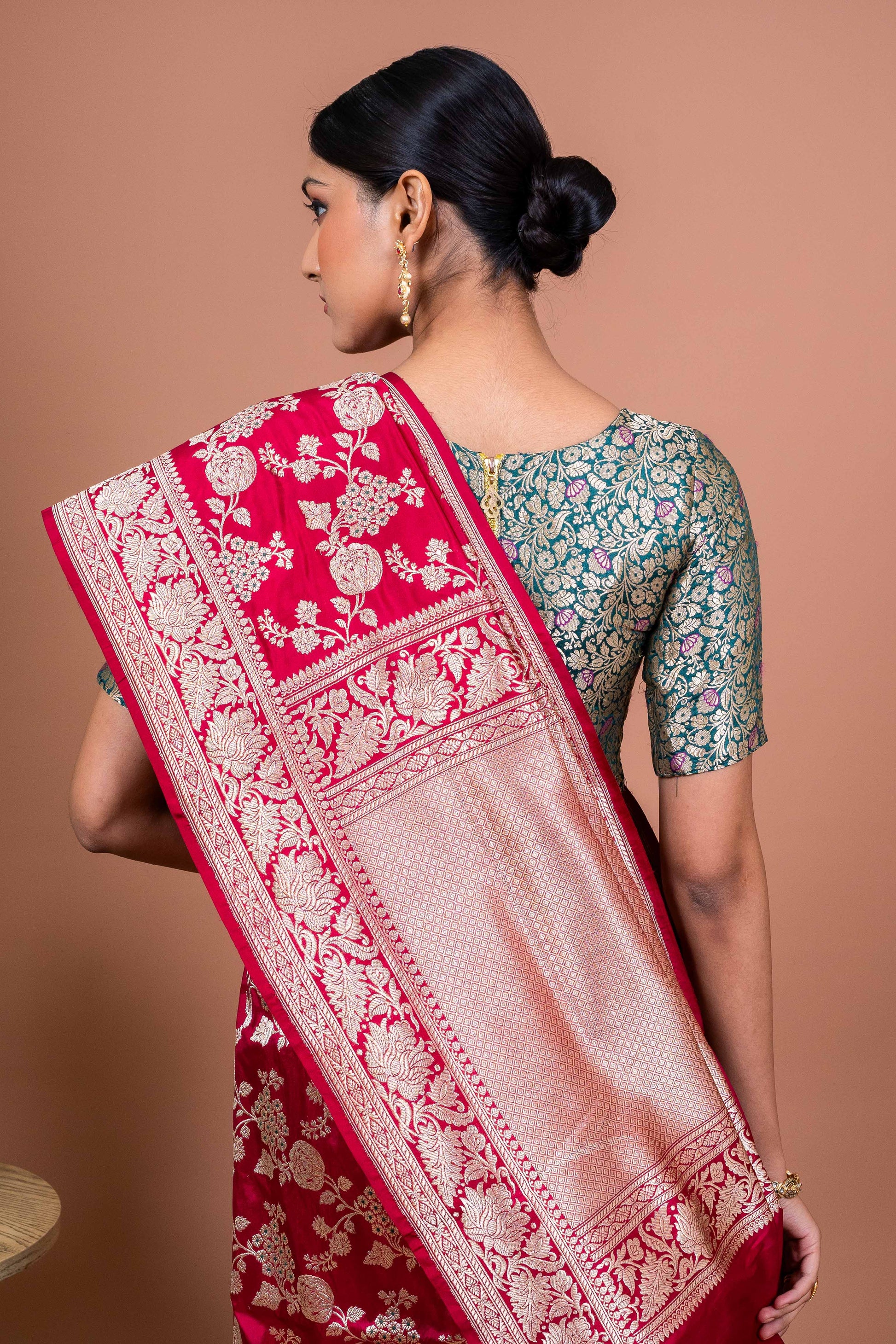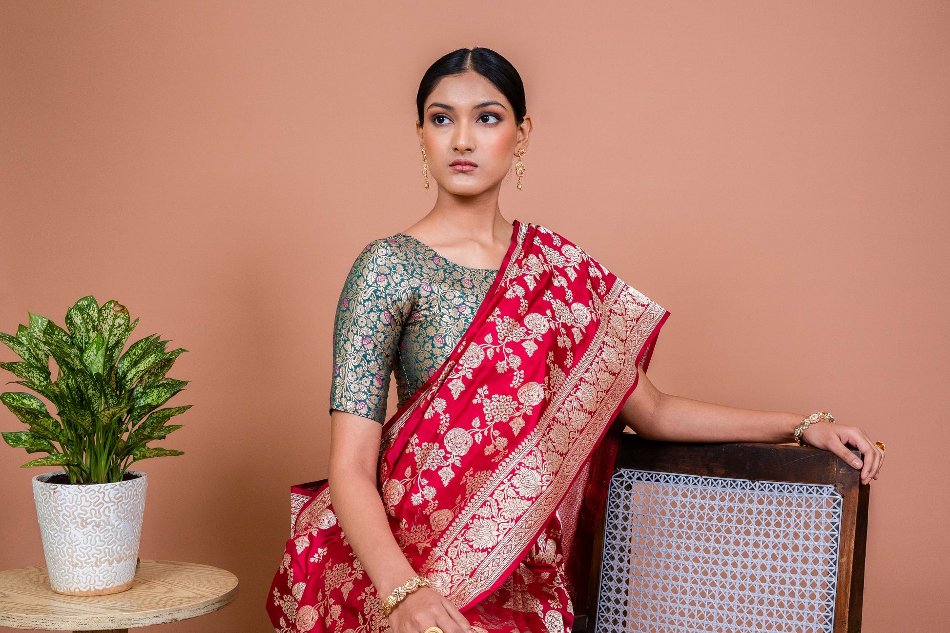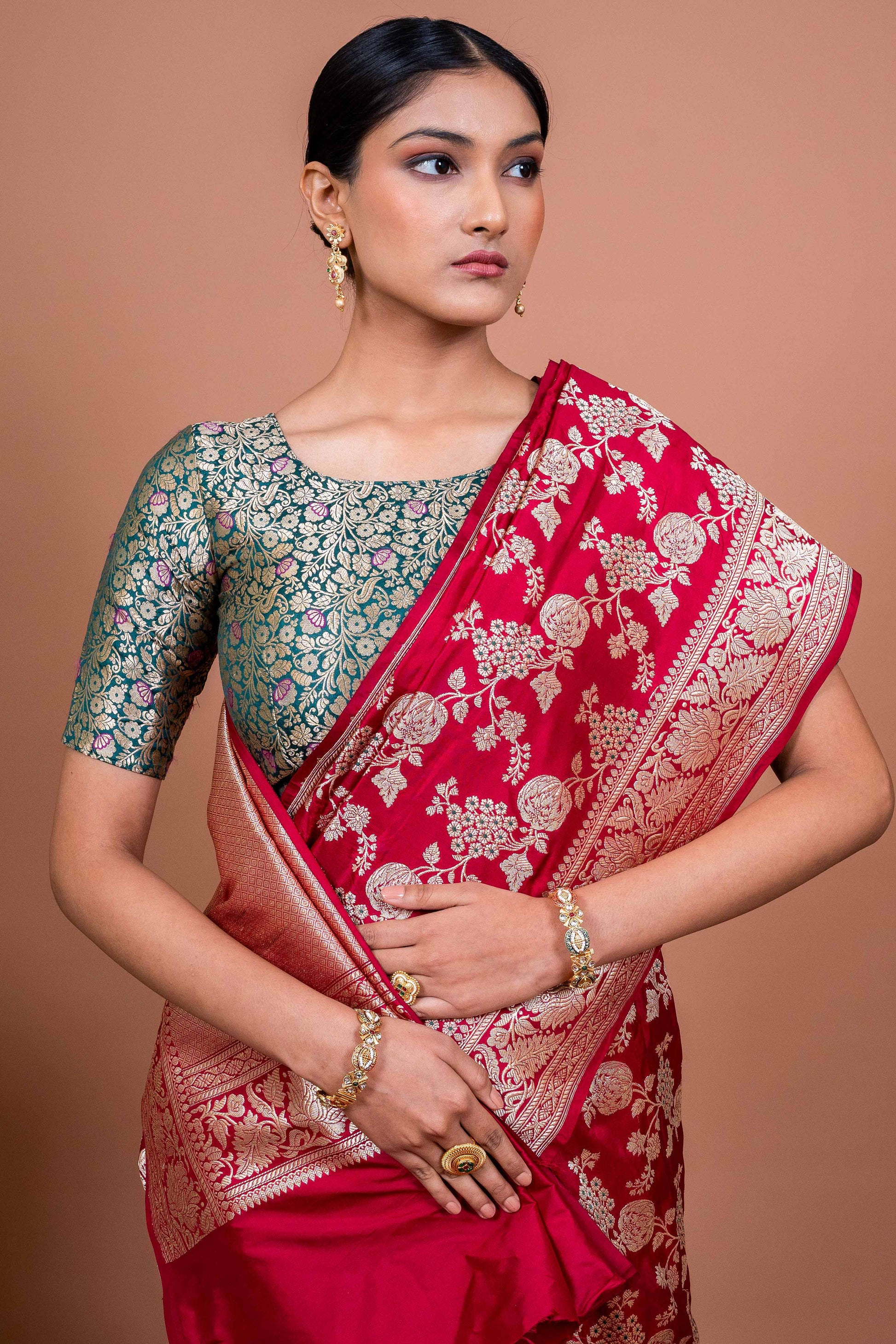 A Shade That Speaks of Celebration – The vibrant red, reminiscent of pomegranate blooms, symbolizes love, prosperity, and festivity. It’s a color that commands attention yet feels deeply personal.