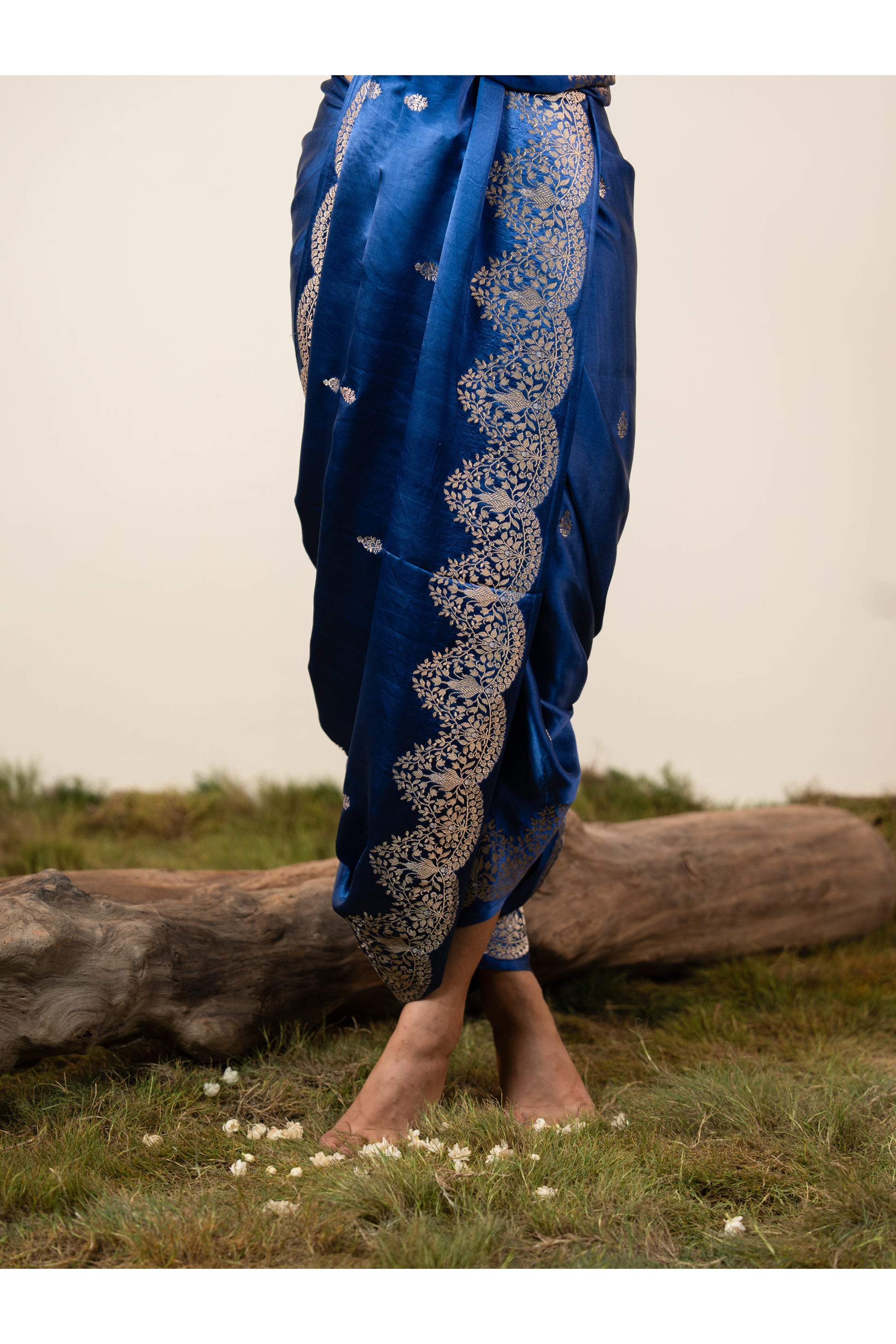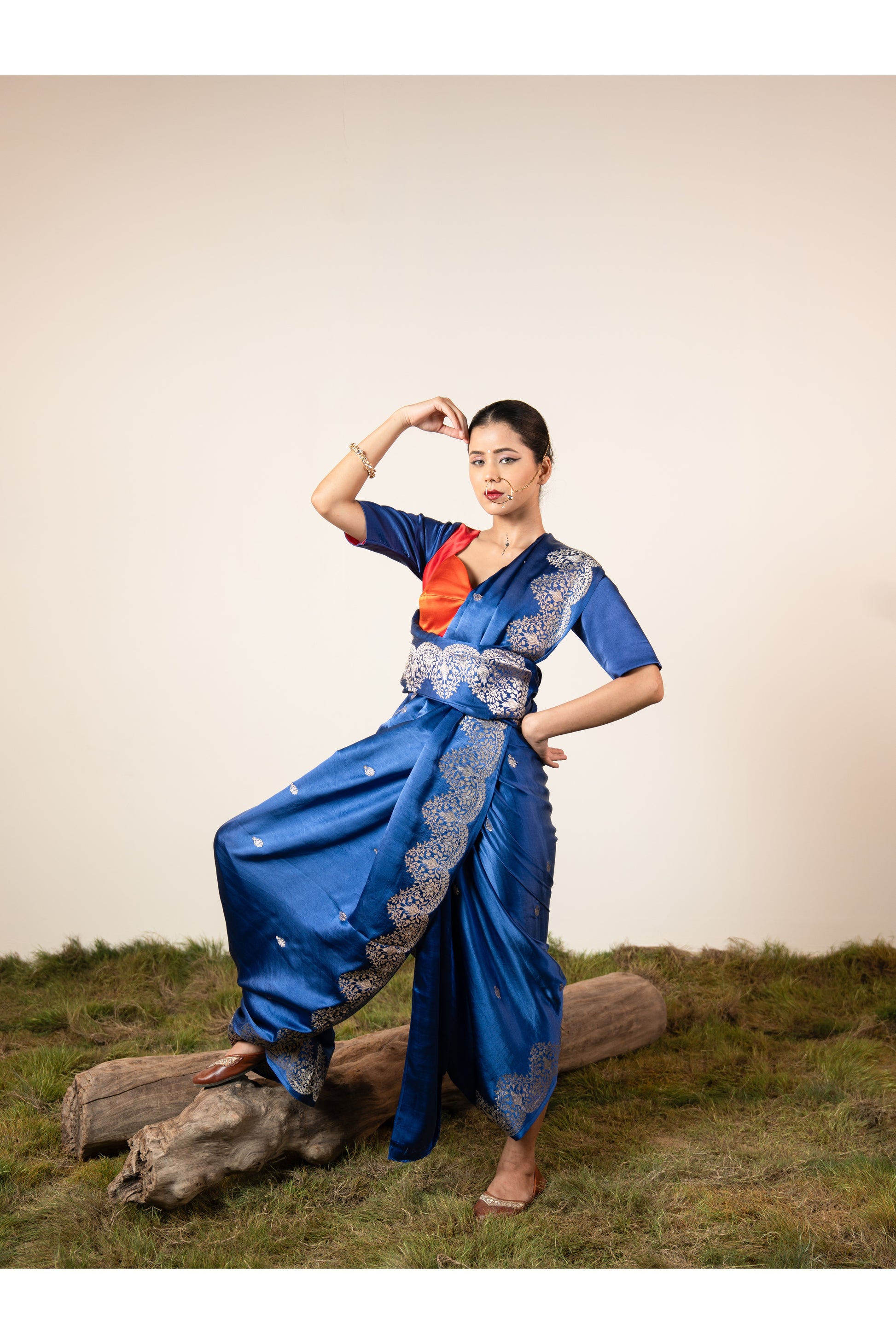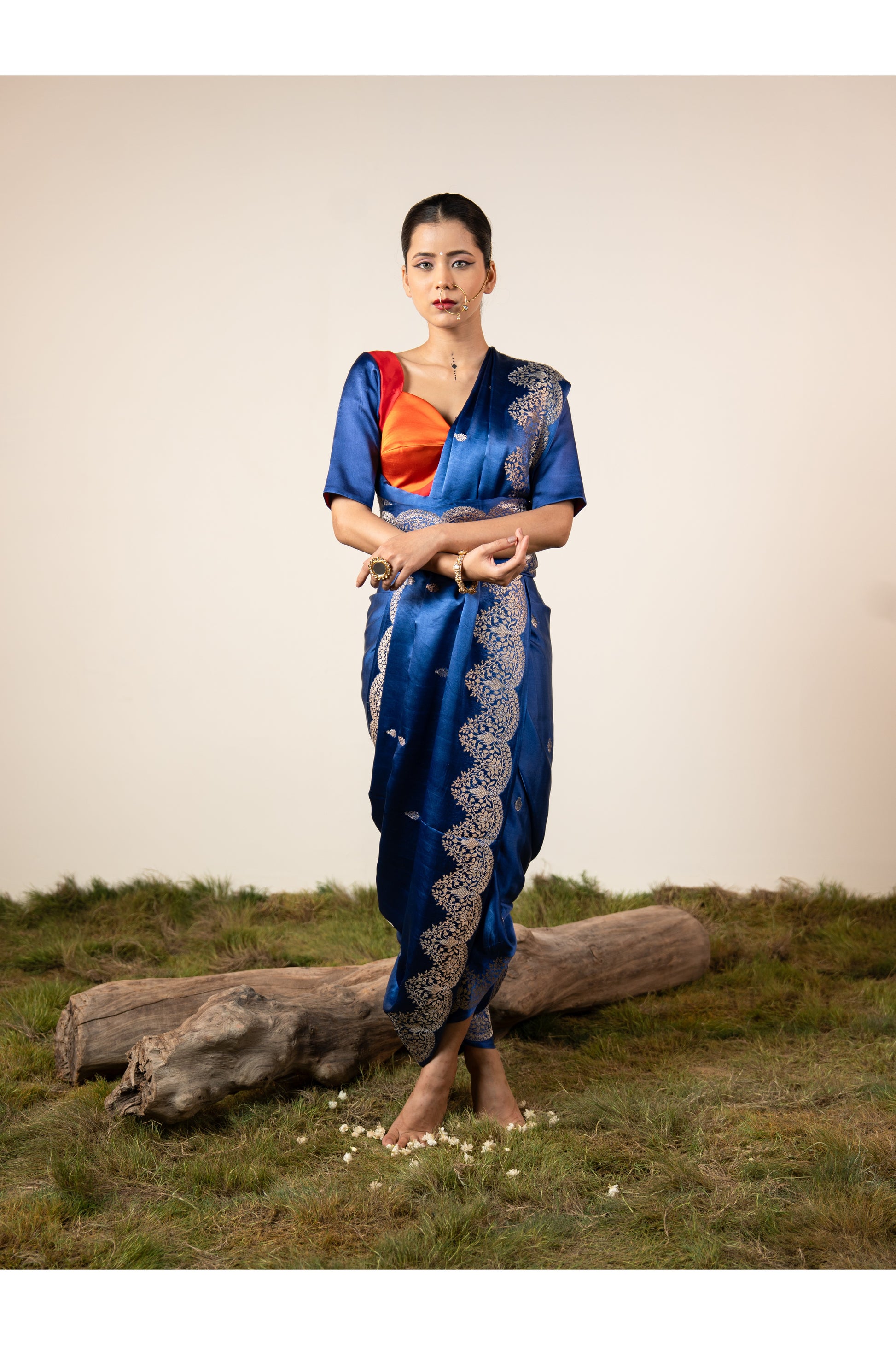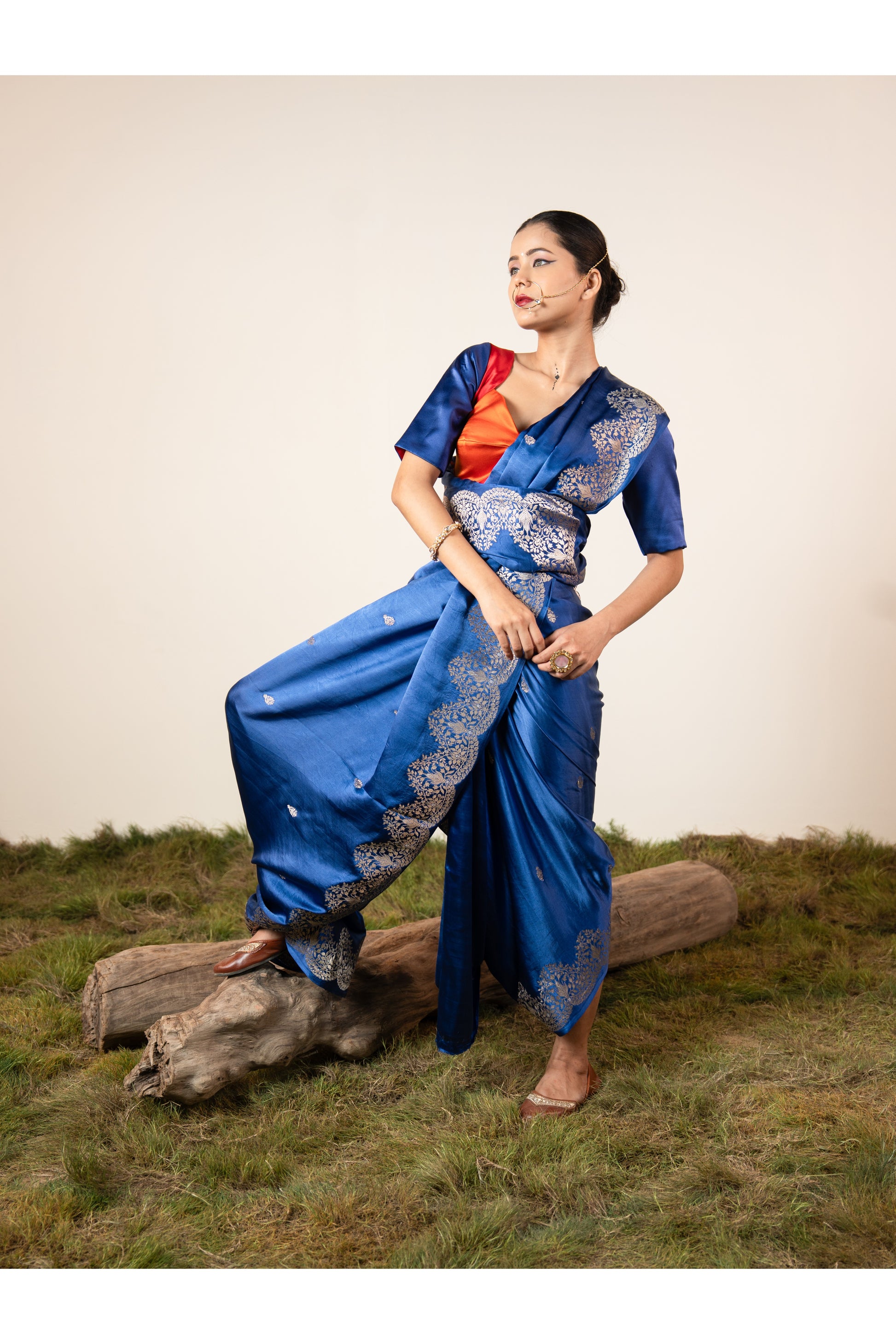 The deep blue shade adds a regal touch, making it ideal for evening functions, receptions, and special festive occasions where elegance takes center stage.