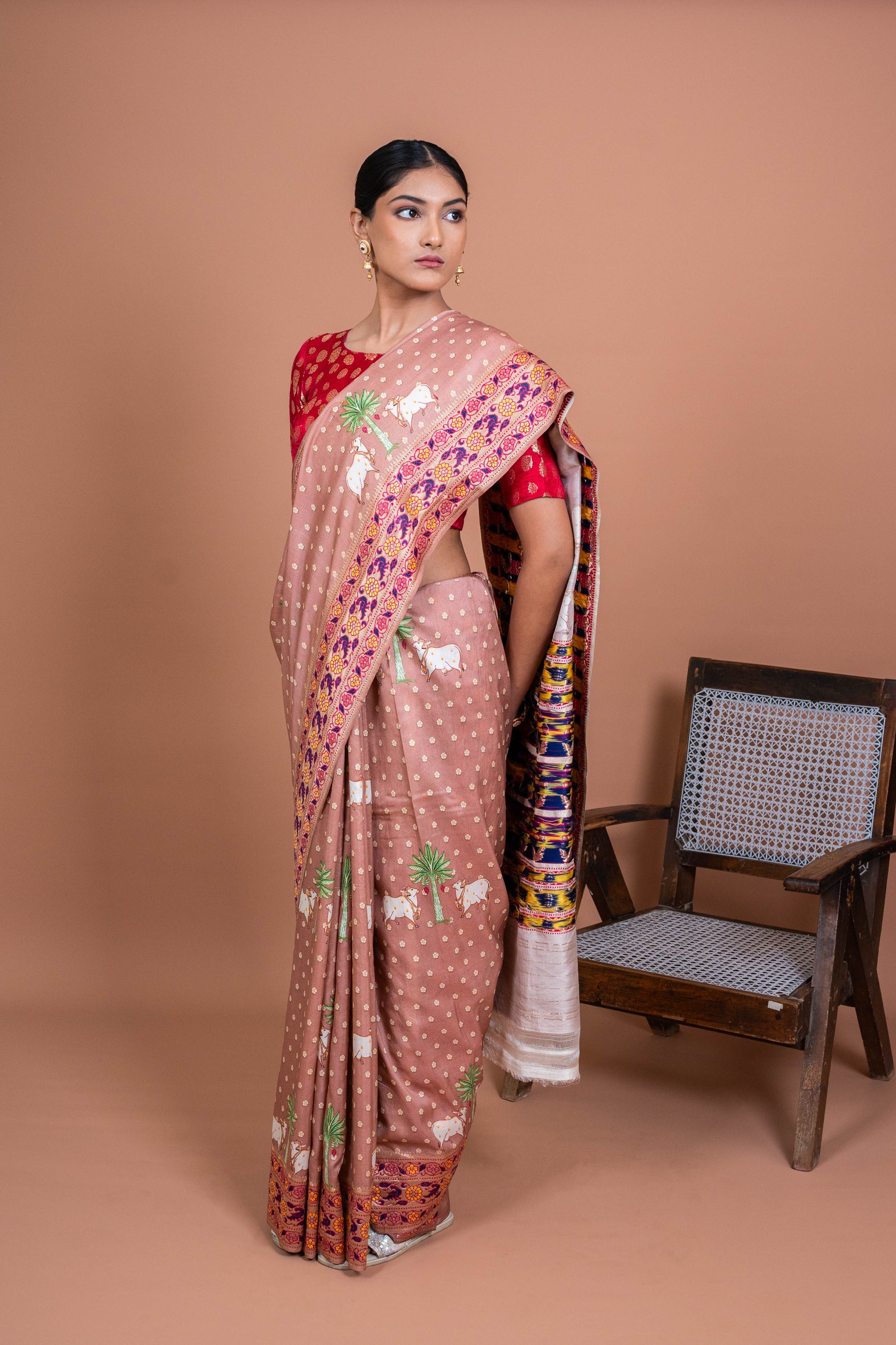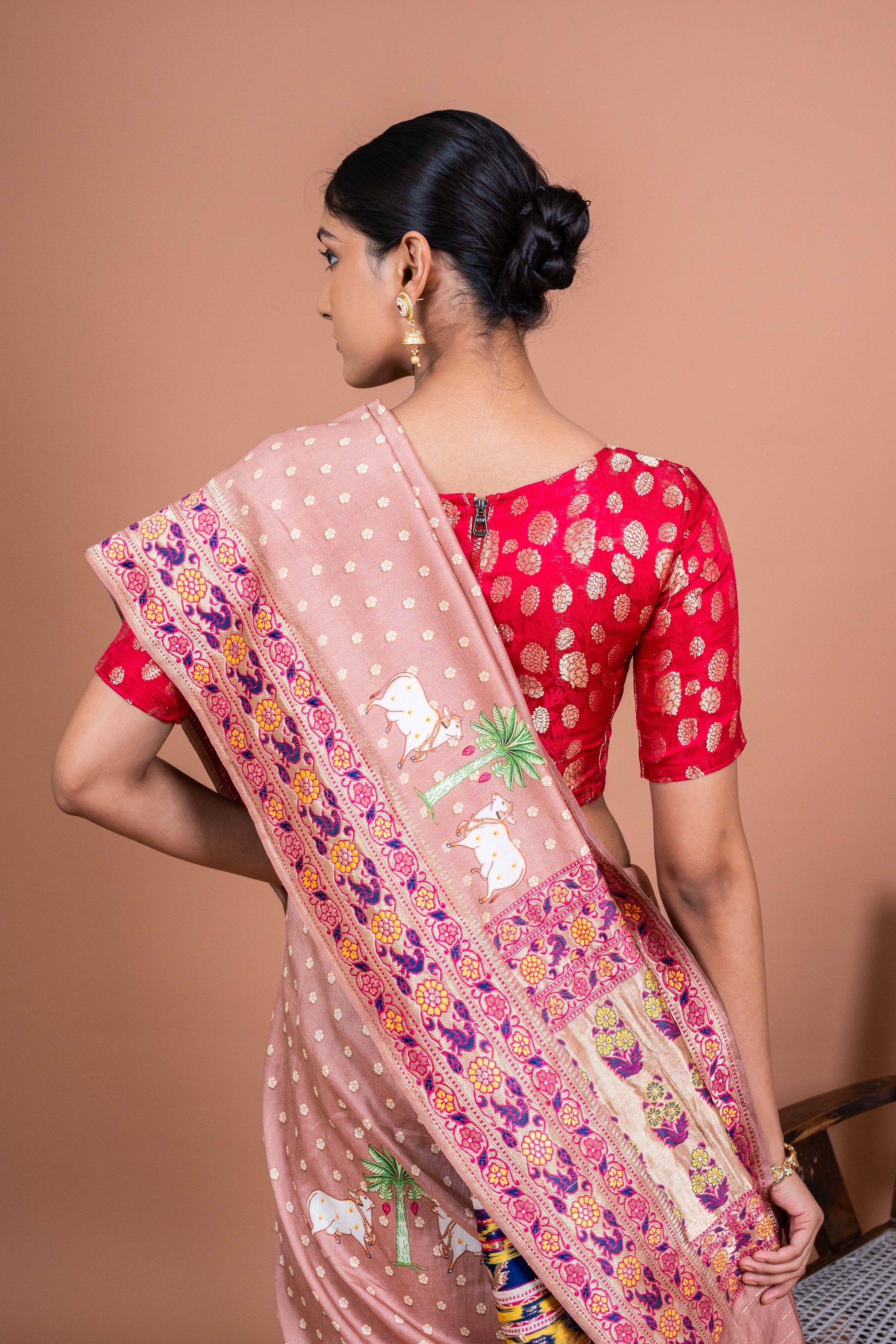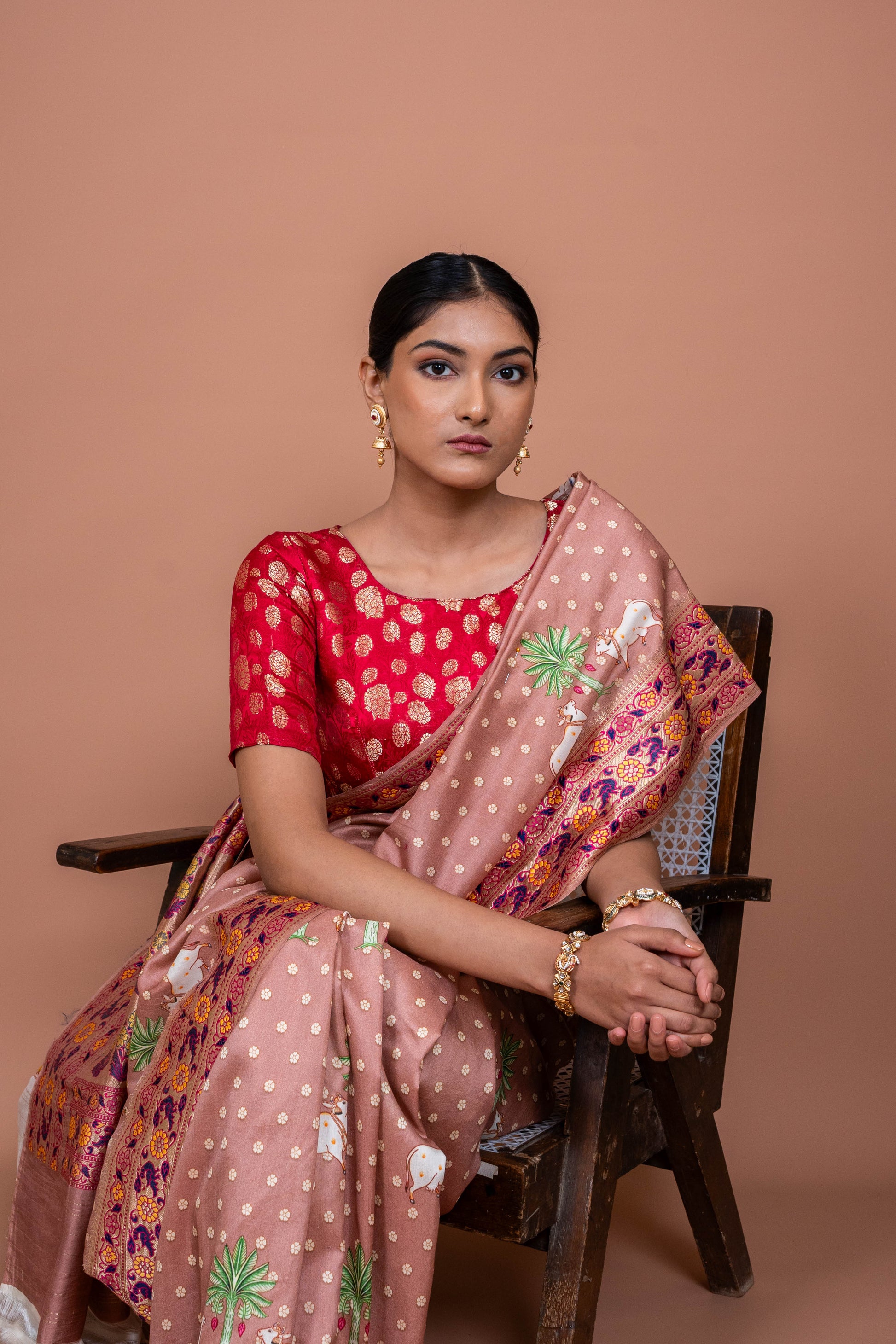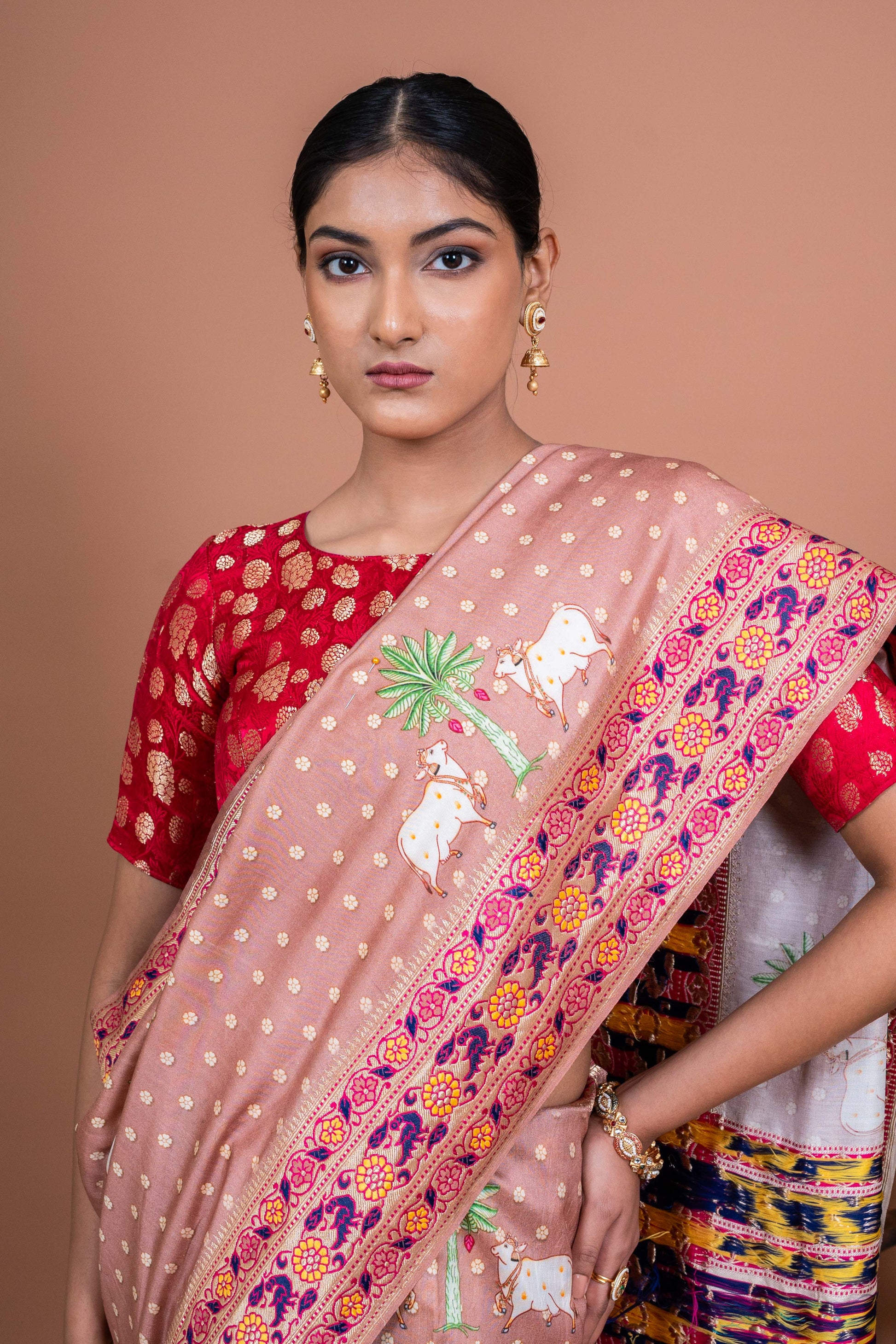 Expertly handwoven in Banaras, the Ashanandi Saree is a beautiful blend of traditional craft and modern style. Made from high-quality materials, it offers a comfortable fit and elegant drape. With its intricate patterns and vibrant colors, this saree is perfect for any special occasion.