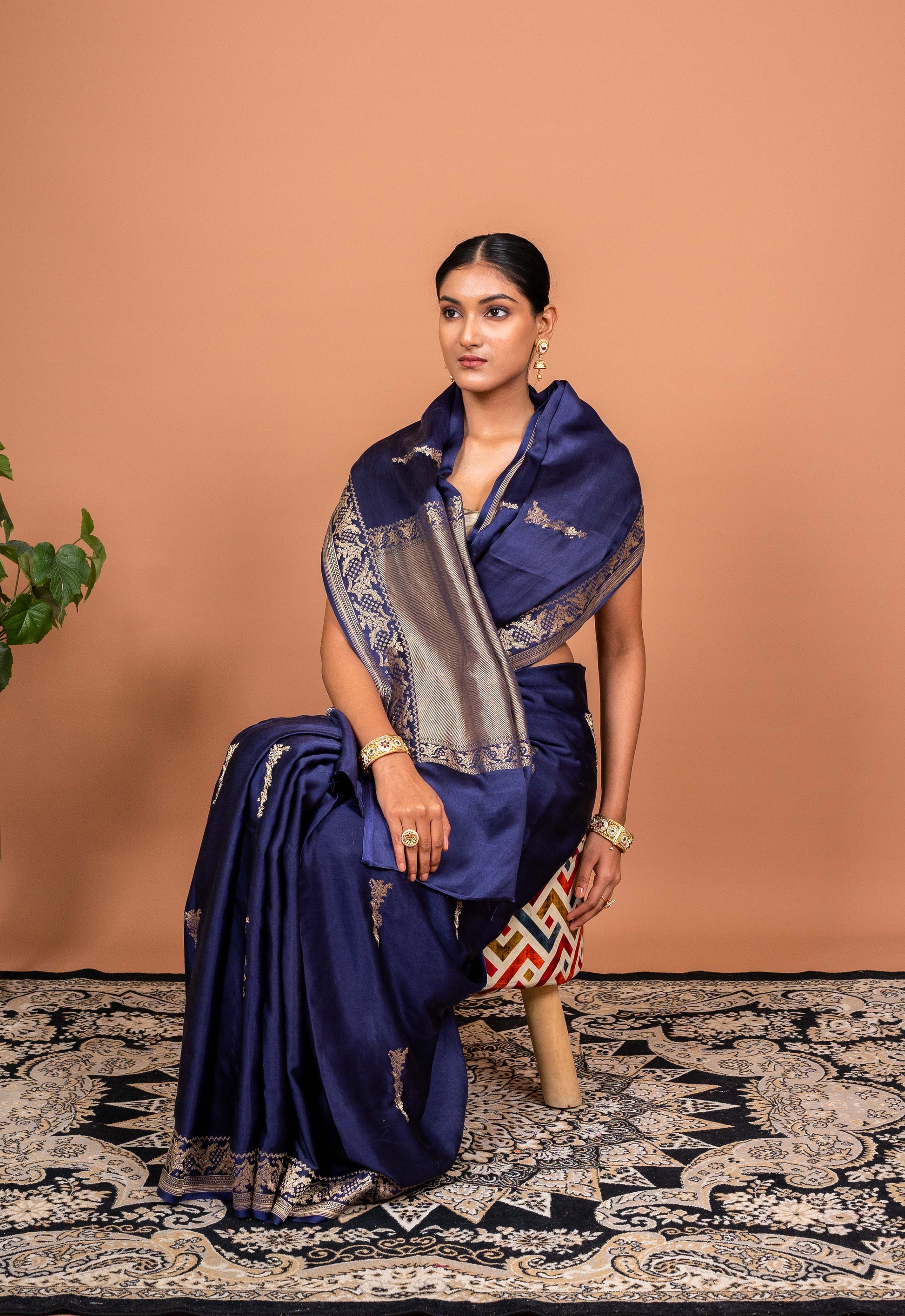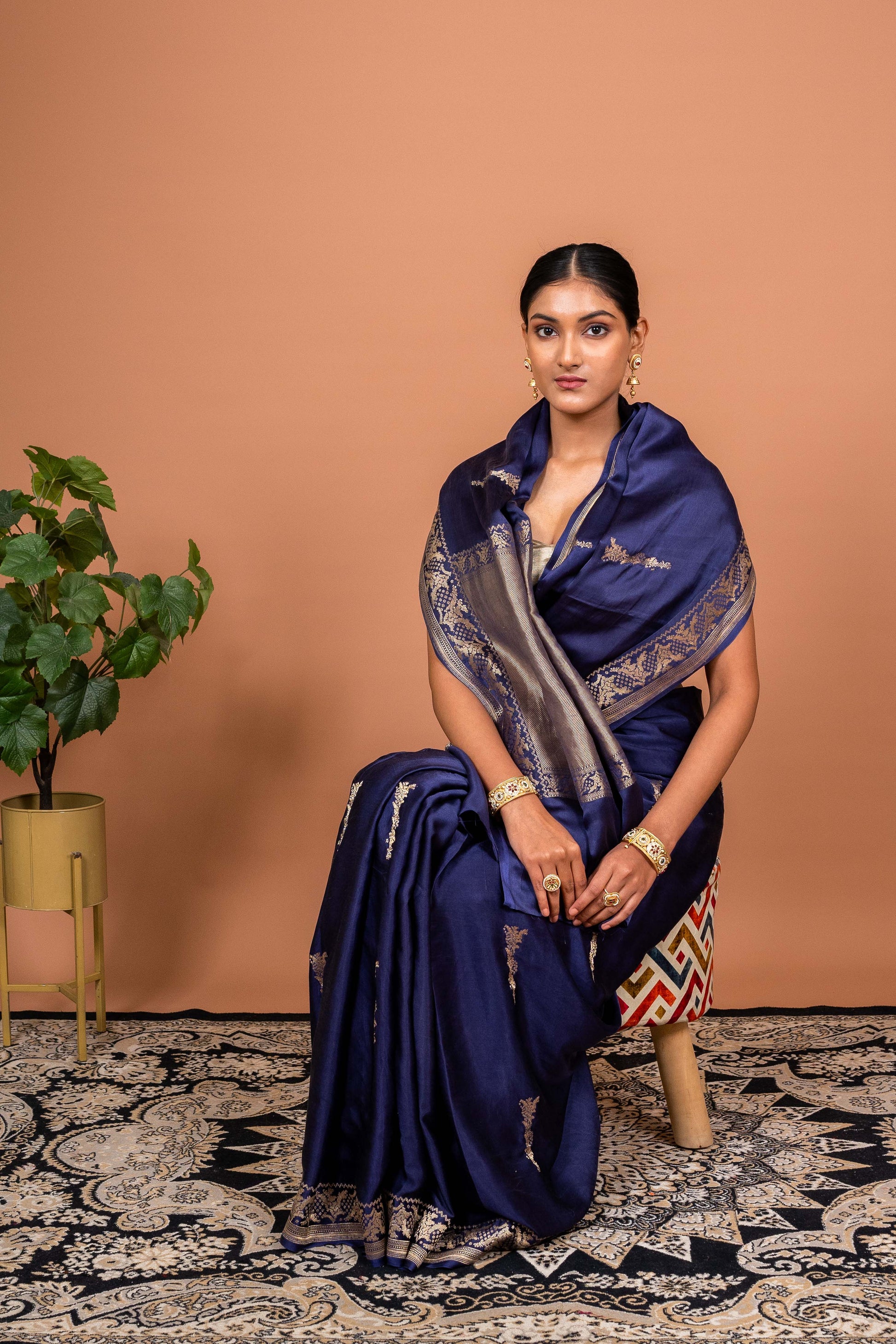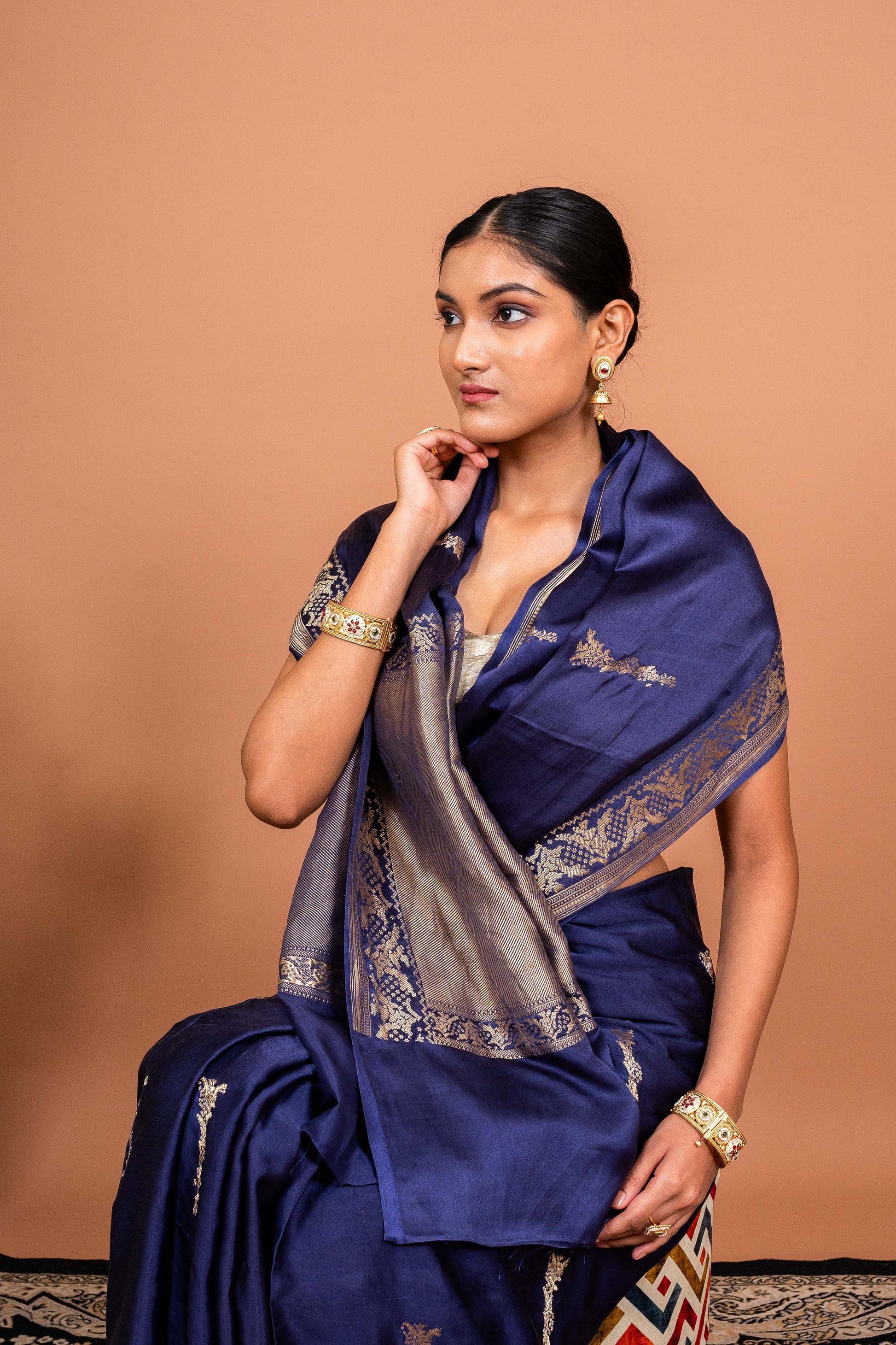 A saree that speaks of sophistication and timeless beauty—the Decor Handwoven Banarasi Silk Saree in a mesmerizing blue hue is a masterpiece of craftsmanship. Like the gentle ripples of a serene lake, its rich silk drapes effortlessly, exuding grace in every fold. This saree is for the woman who finds power in simplicity and elegance in tradition.