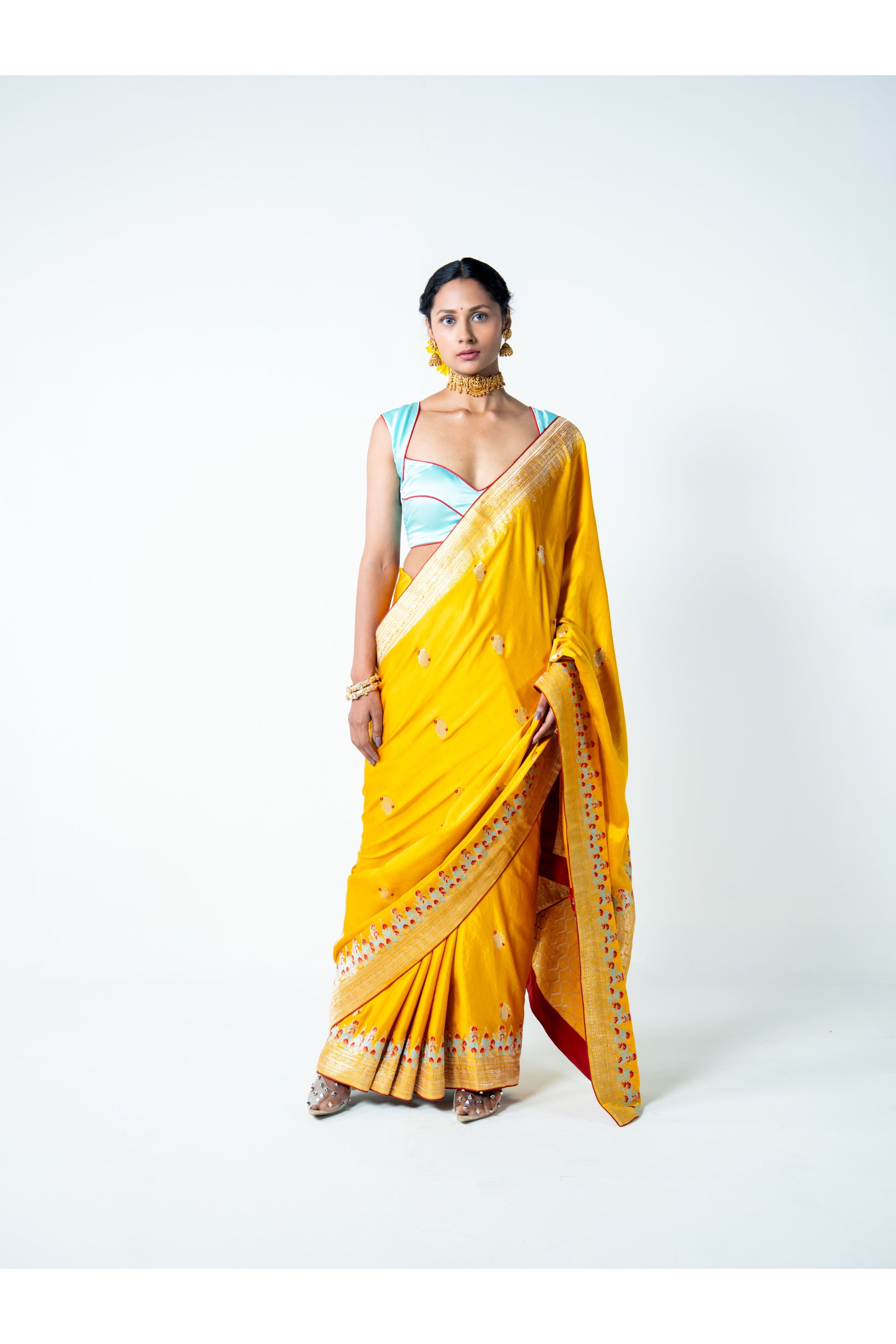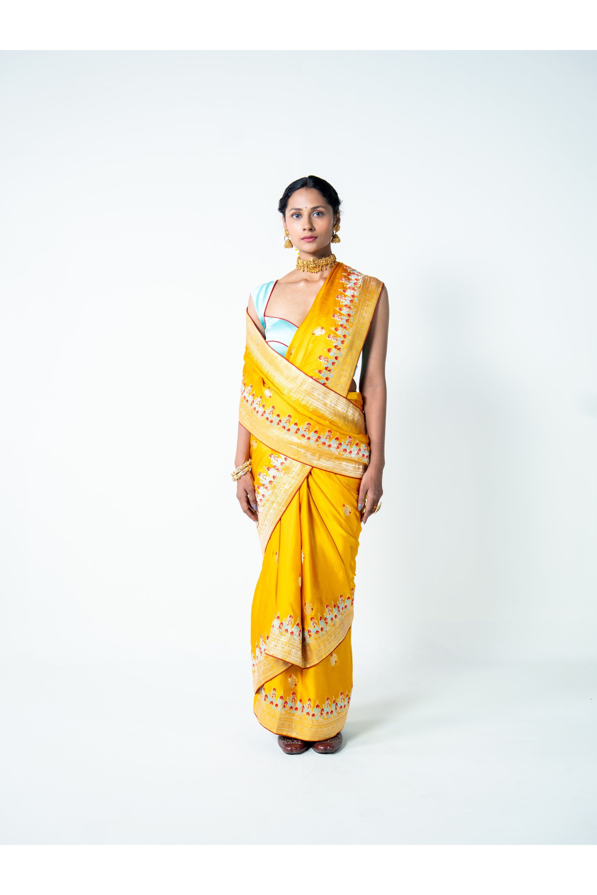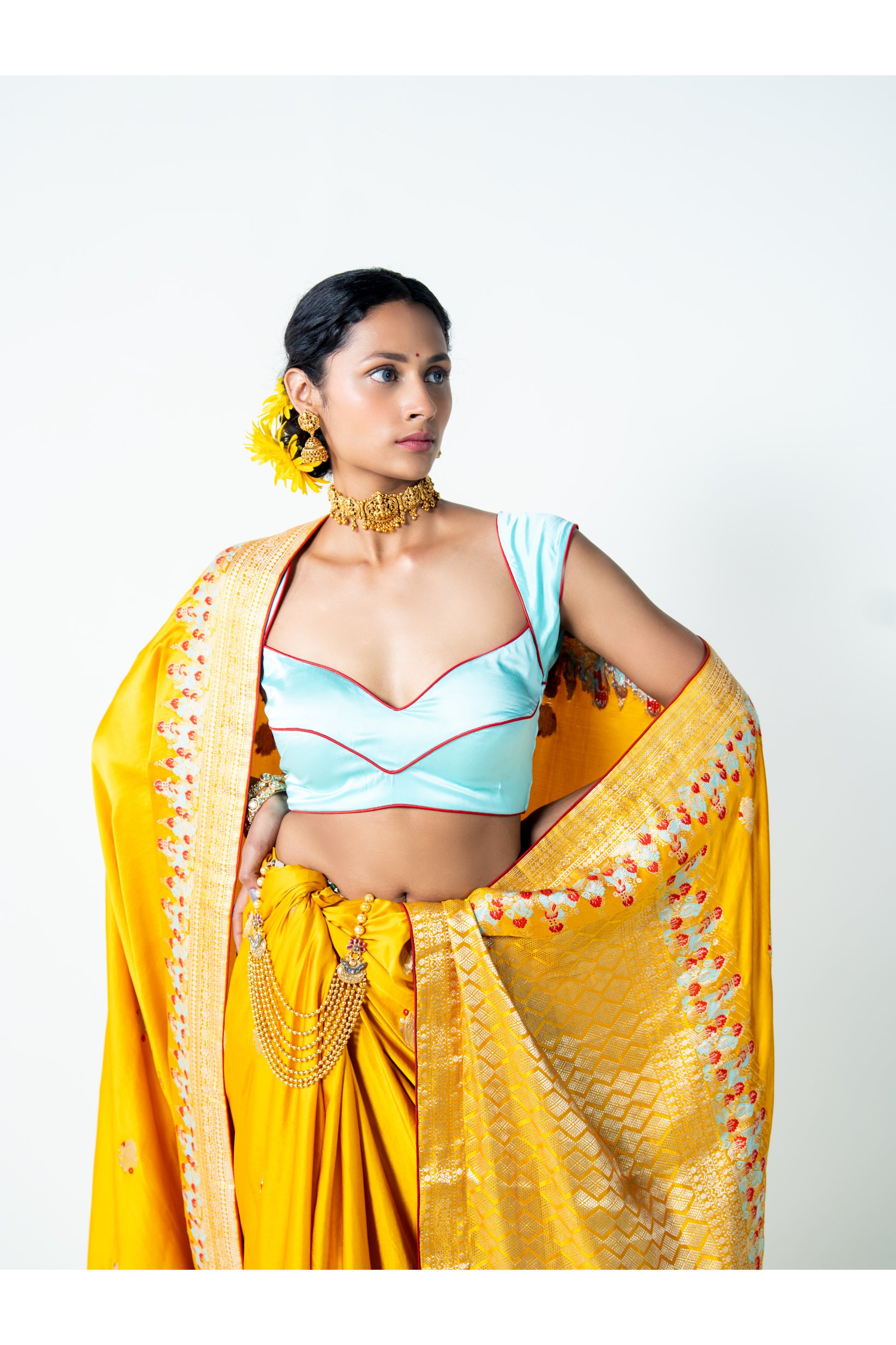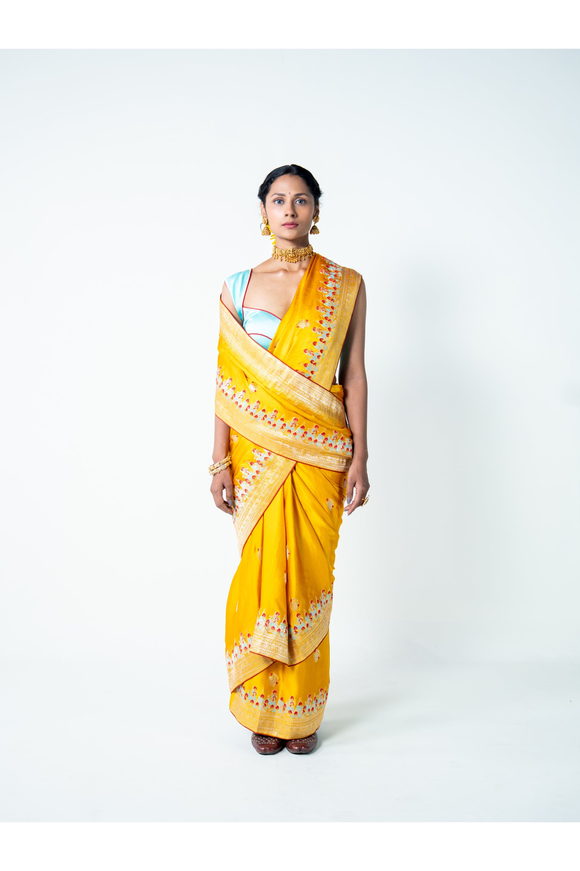 Its bright yellow hue symbolizes positivity, warmth, and celebration—making Devshree an irresistible piece for joyful occasions.