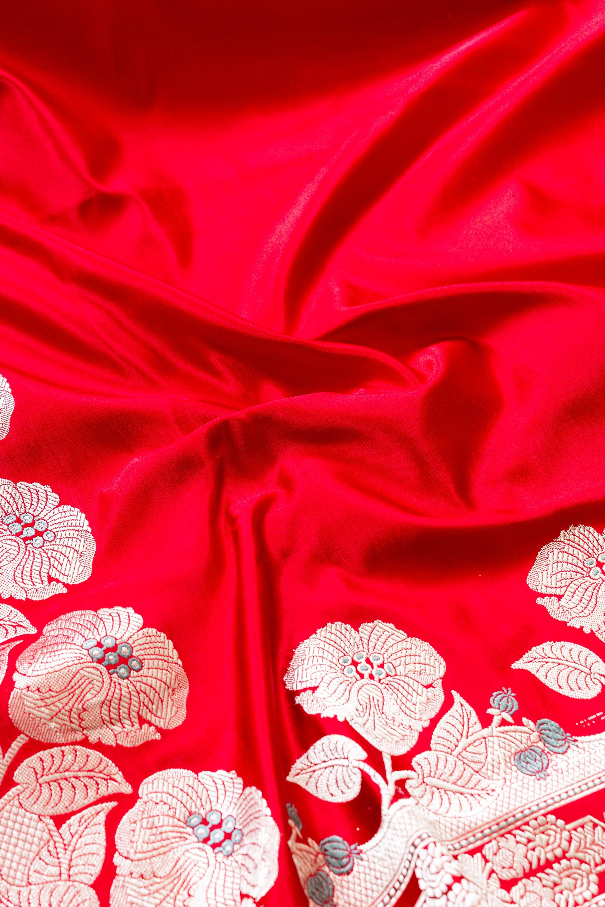 Some sarees demand attention. Others captivate with quiet grace. The Gul Border Handwoven Banarasi Silk Saree in a deep, regal red does both. With its intricate floral border and luxurious silk drape, this saree is woven for the woman who carries tradition with effortless charm. A perfect blend of heritage and timeless beauty, it turns every moment into a memory.