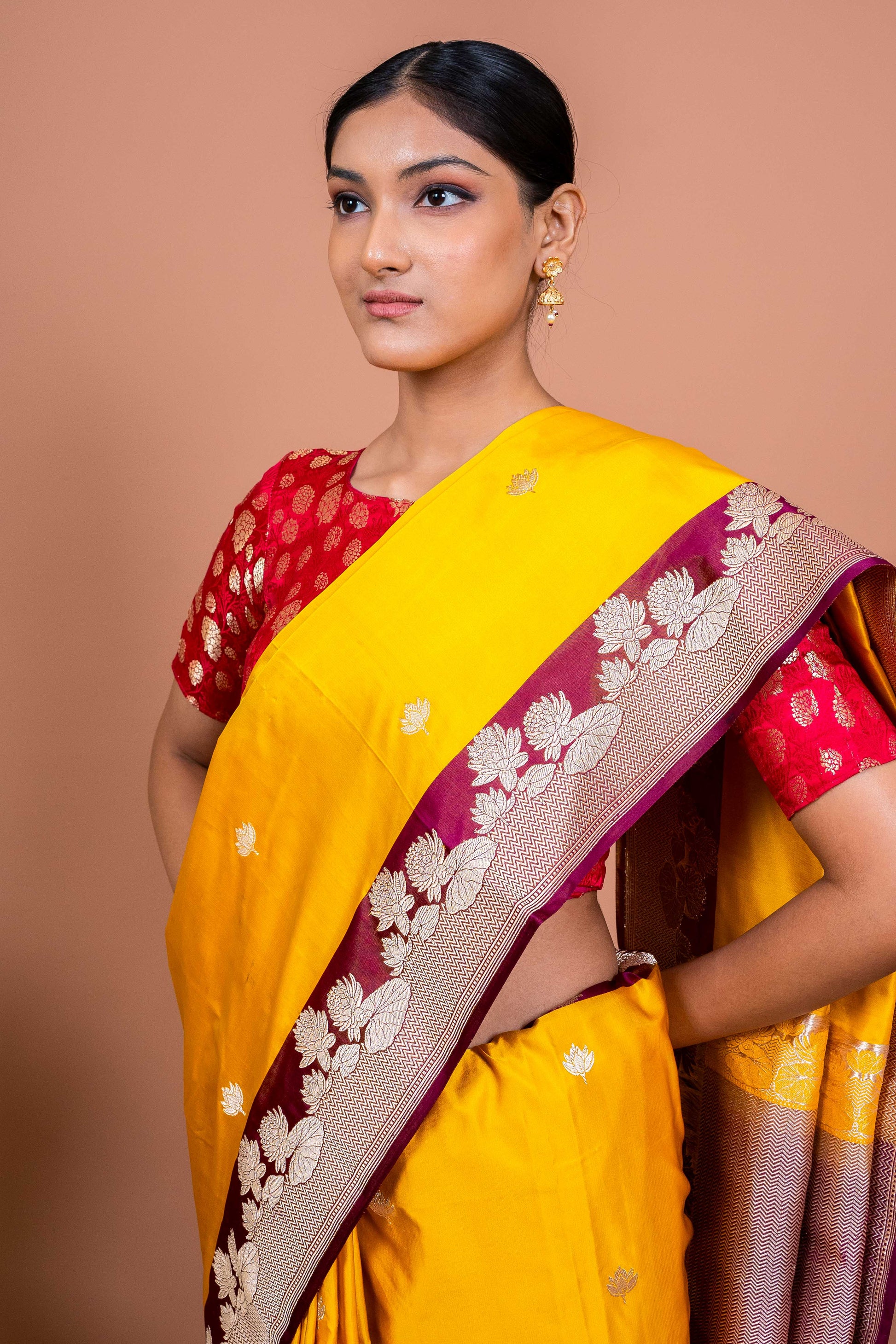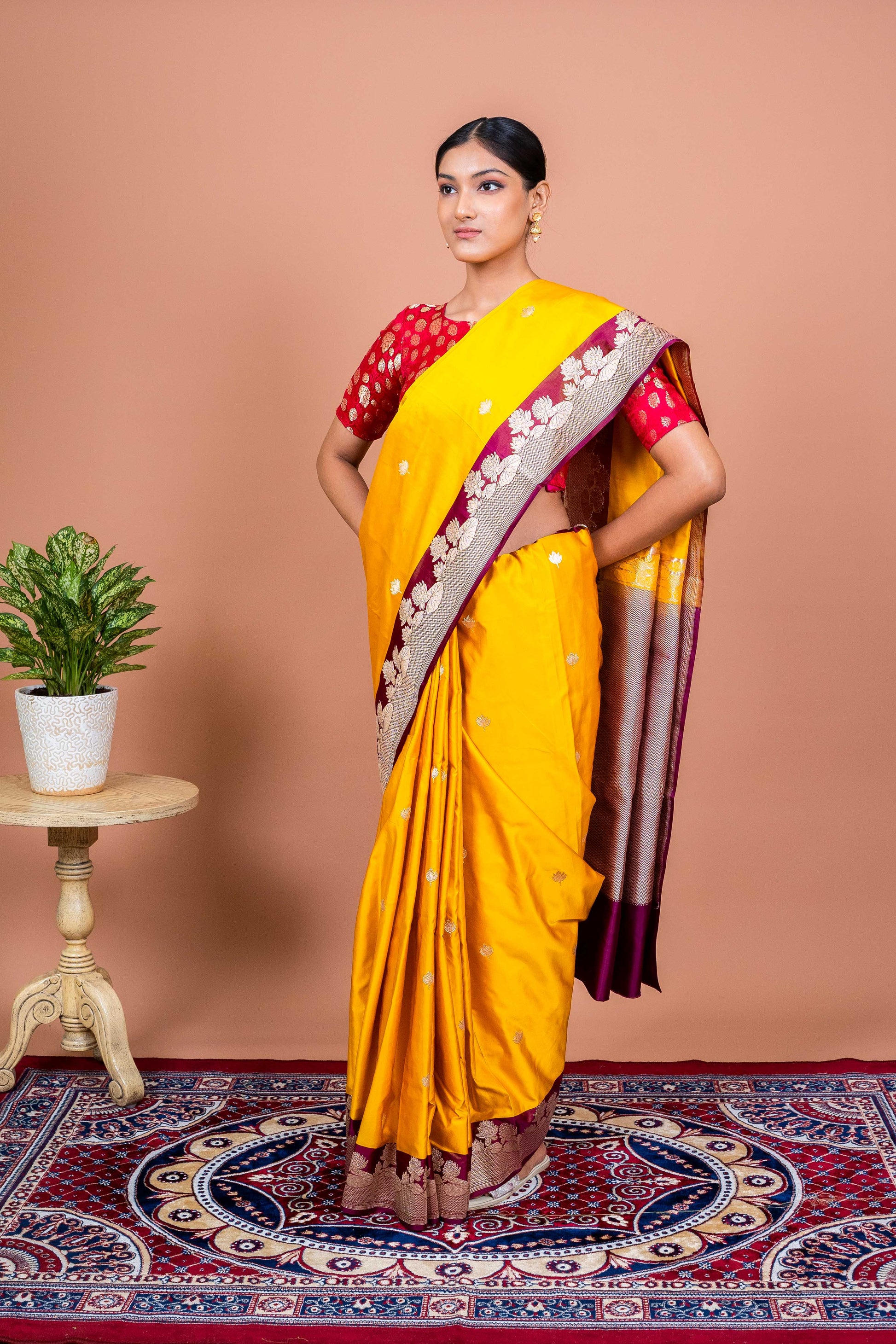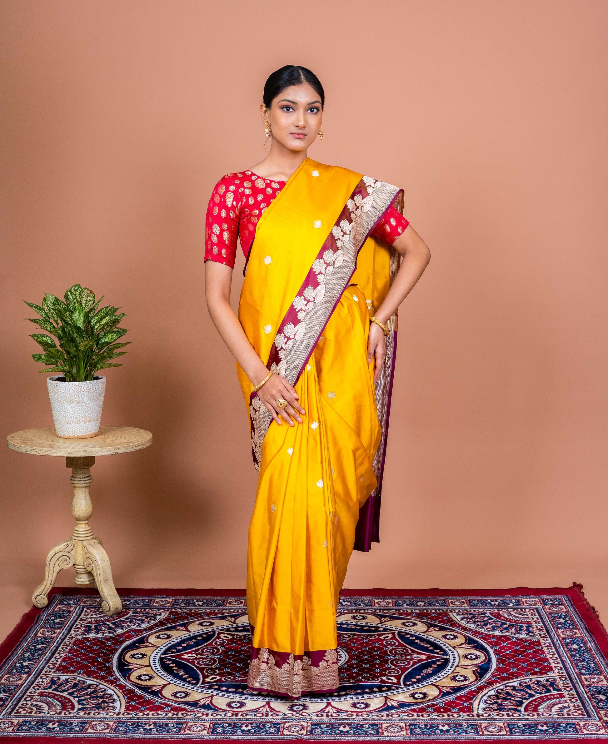 Wrap yourself in the warmth of tradition, and let the Kirti Border Handwoven Banaras Saree in yellow be the perfect companion for your most cherished moments. Feel the legacy of Banaras in every fold, and make every occasion unforgettable.