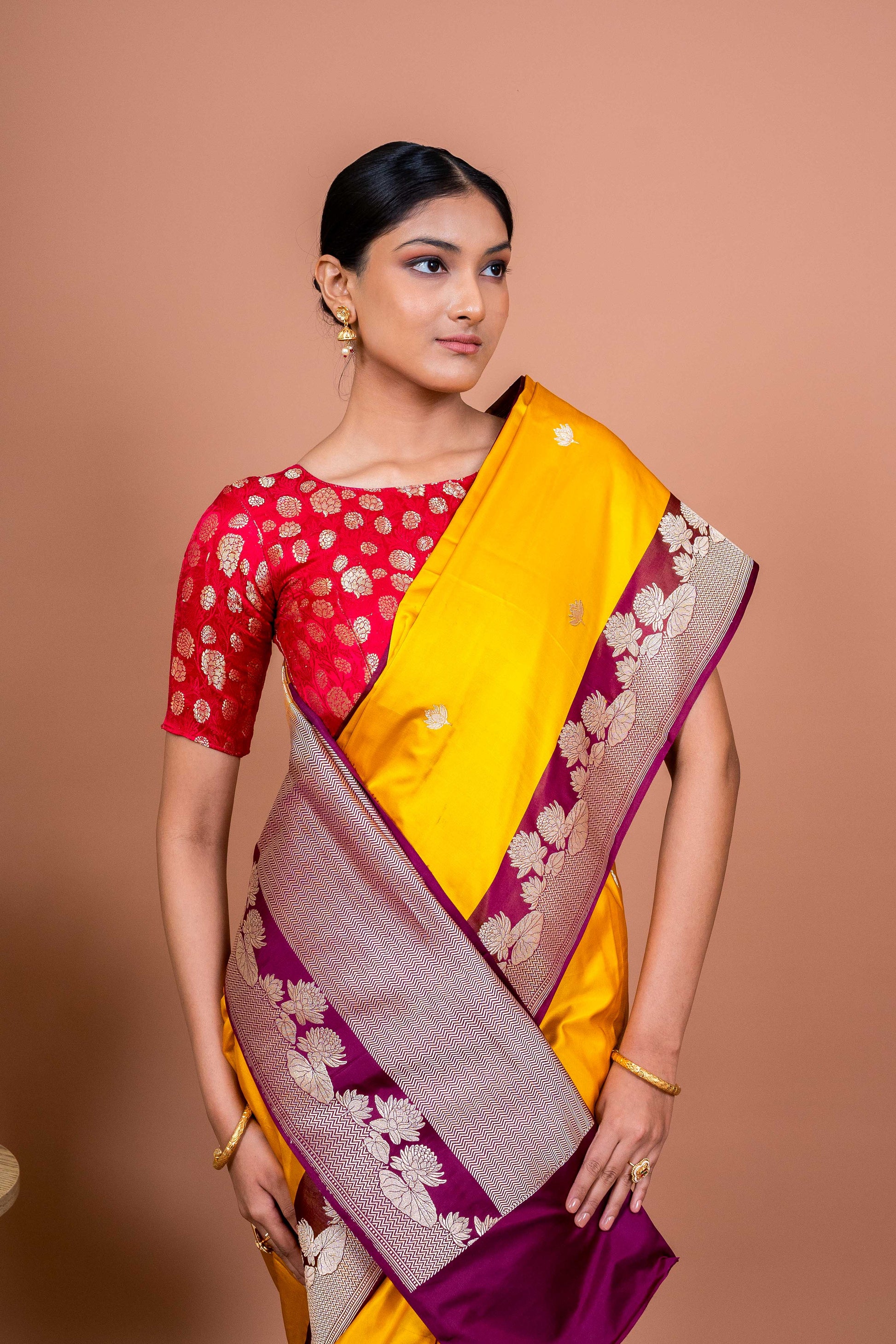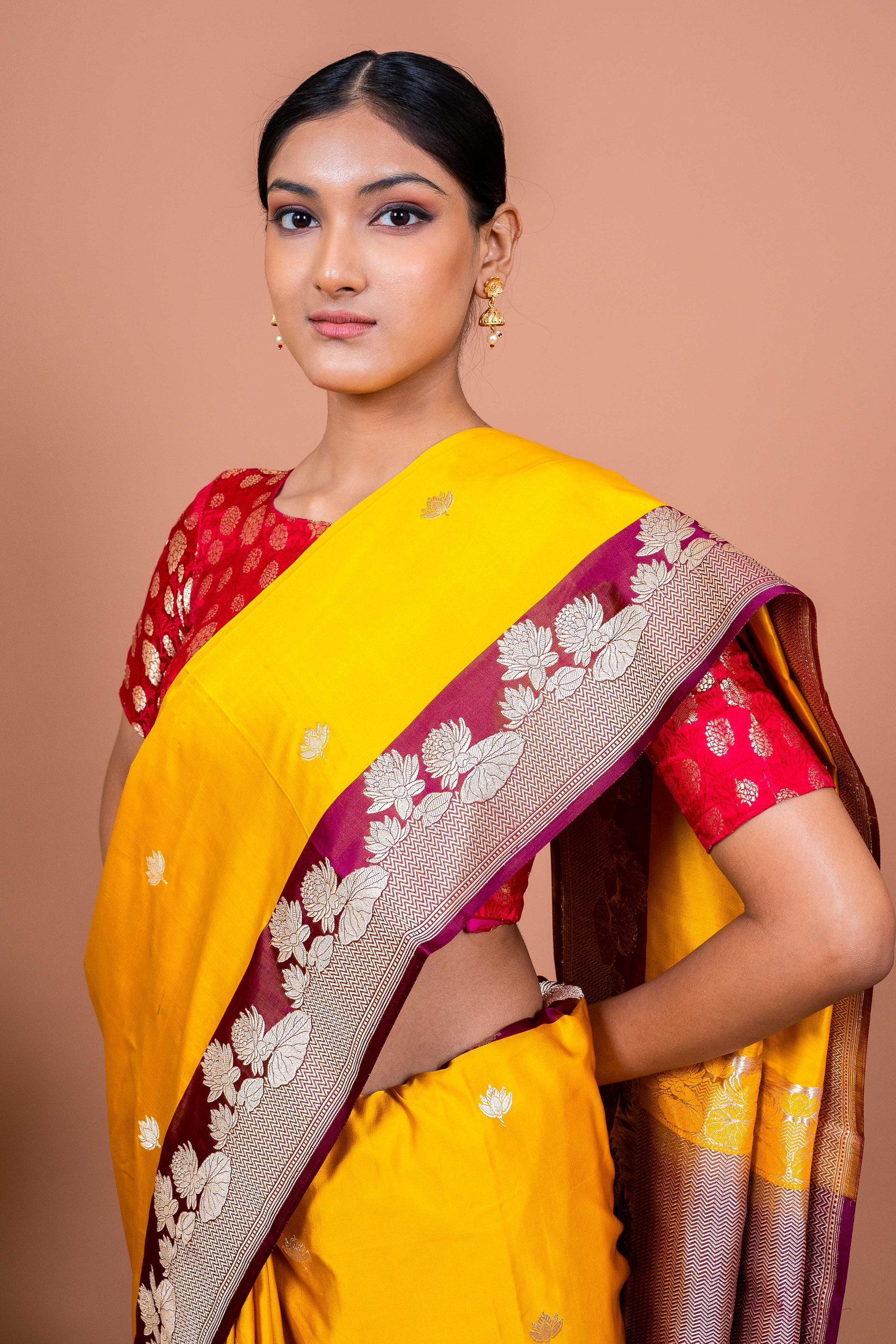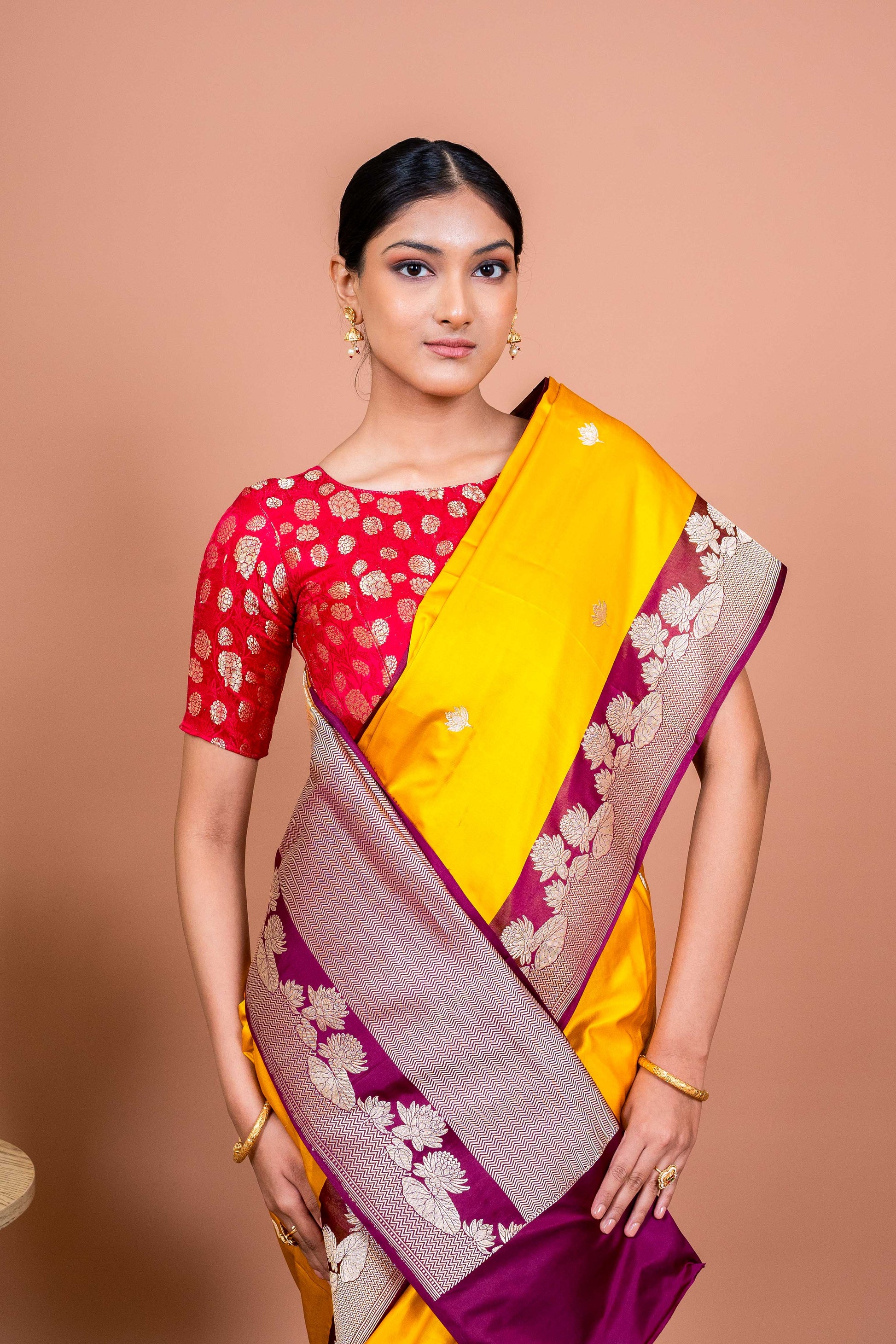 Wrap yourself in the warmth of tradition, and let the Kirti Border Handwoven Banaras Saree in yellow be the perfect companion for your most cherished moments. Feel the legacy of Banaras in every fold, and make every occasion unforgettable.