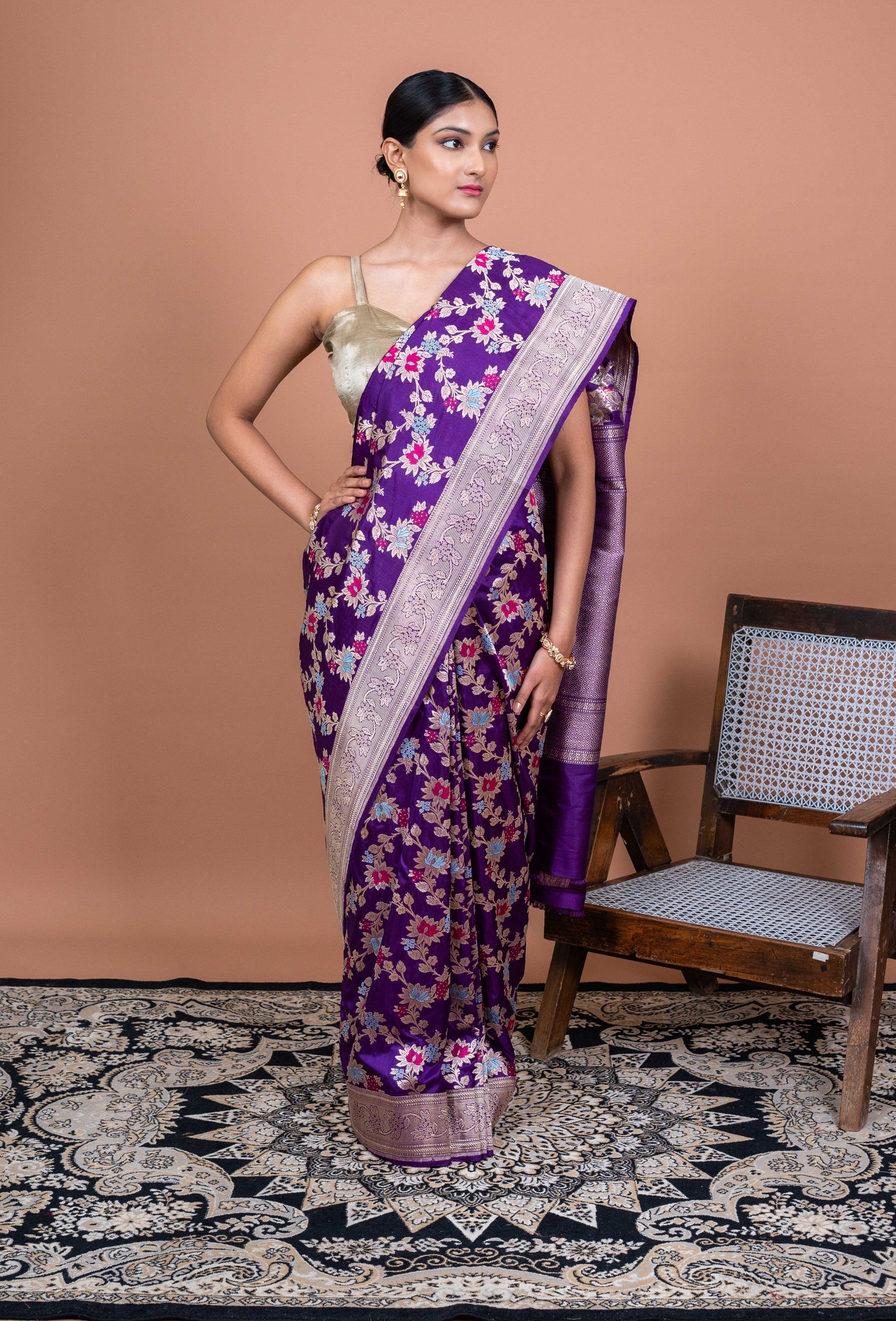 This Naveli Handwoven Banaras Saree features exquisite craftsmanship and intricate designs, making it a timeless piece in any wardrobe. Handwoven in Banaras, India, this saree is not only a cultural statement but also a luxurious addition to your collection. Elevate your style with this beautifully crafted saree.