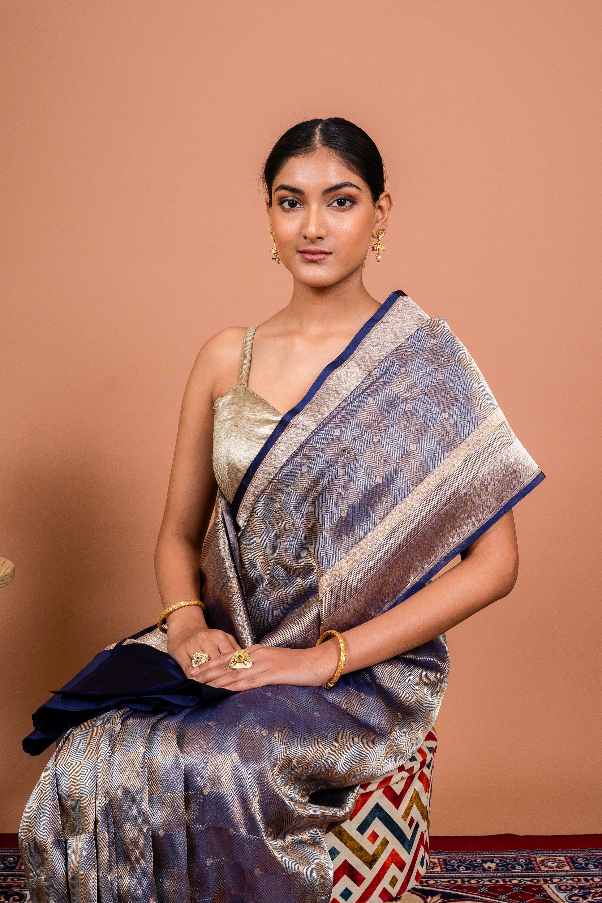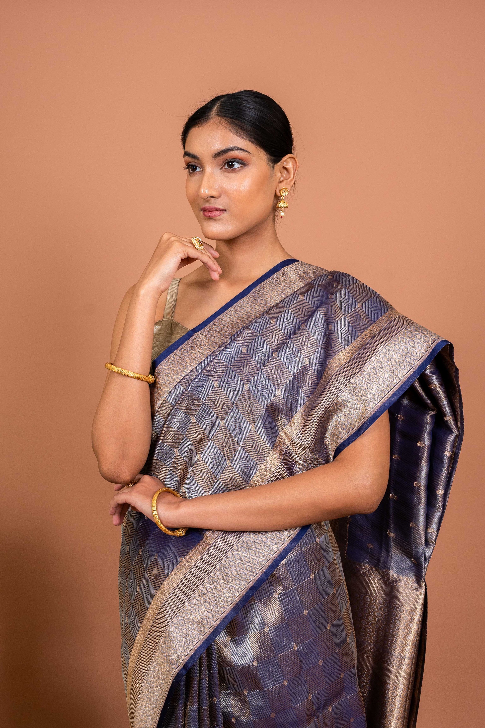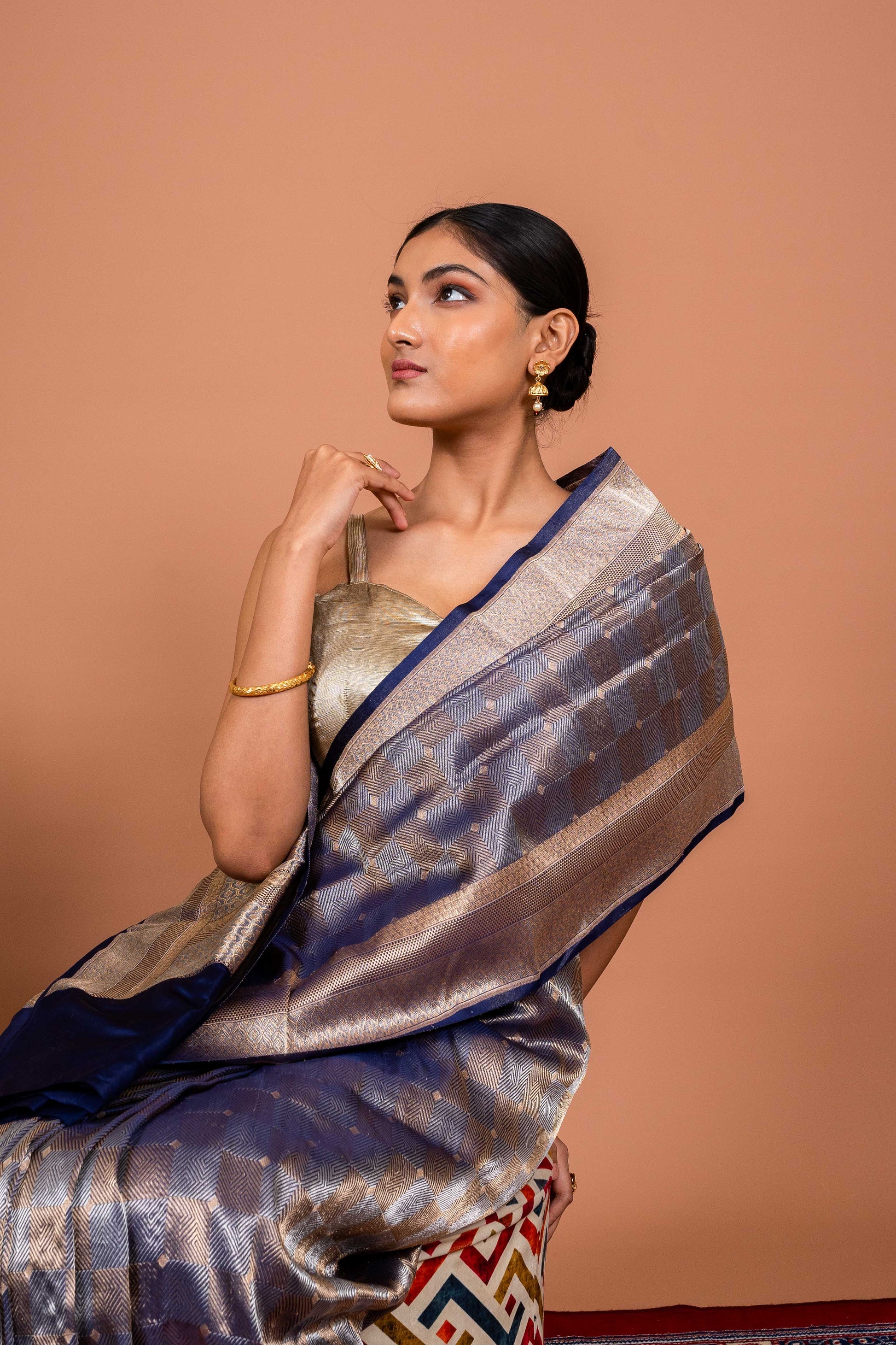 A celebration of color, tradition, and timeless artistry, the Navrang Handwoven Banarasi Saree in a deep, regal blue is a true masterpiece. Woven with meticulous care, this saree reflects the richness of Banaras’s weaving heritage while embracing a contemporary charm. Every drape flows effortlessly, exuding grace and elegance.