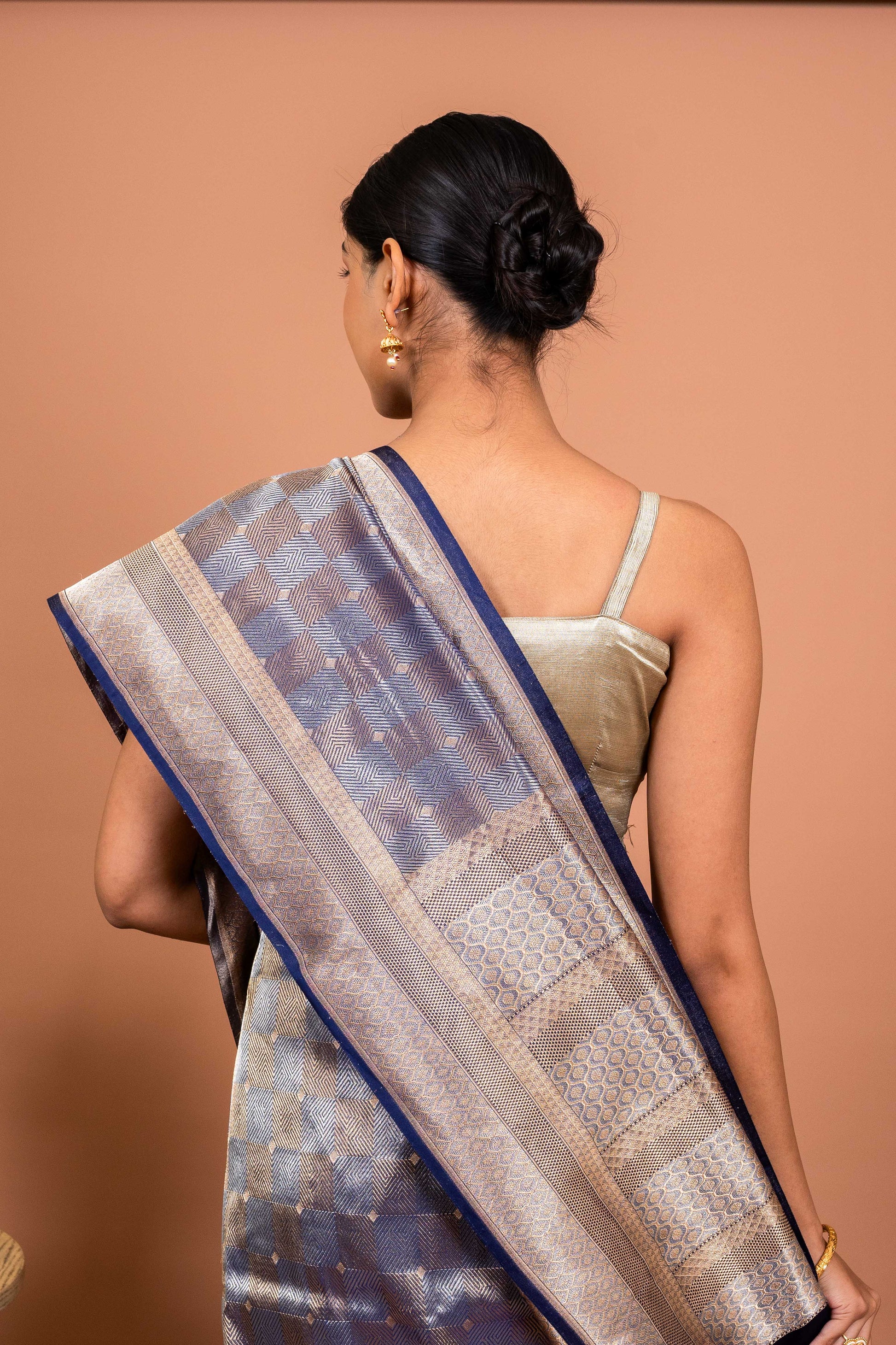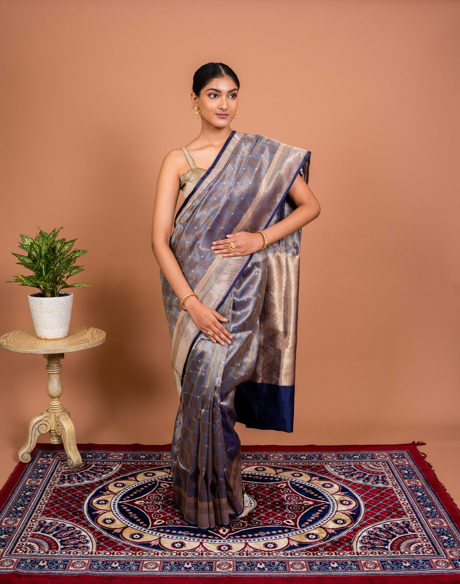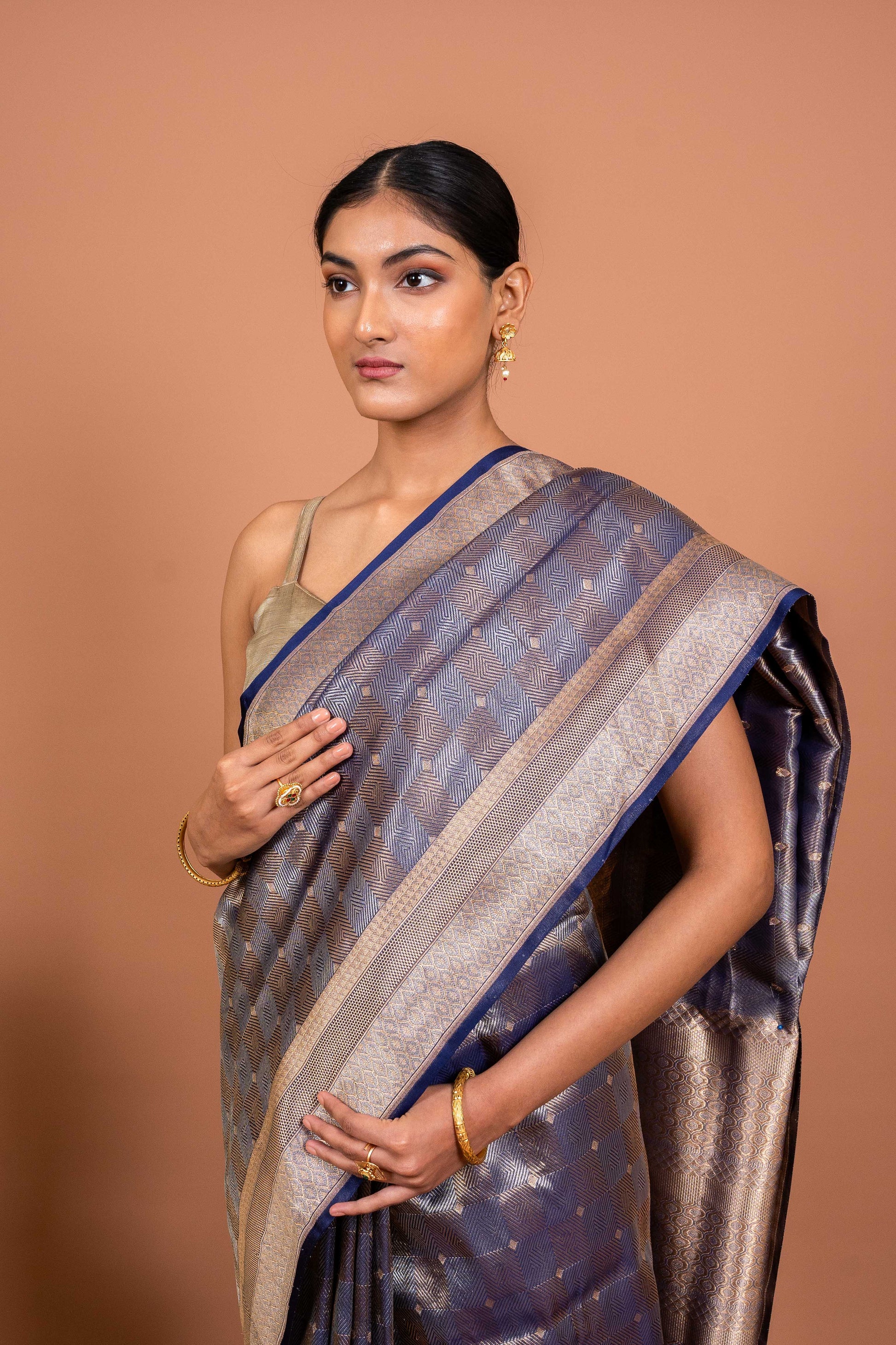A celebration of color, tradition, and timeless artistry, the Navrang Handwoven Banarasi Saree in a deep, regal blue is a true masterpiece. Woven with meticulous care, this saree reflects the richness of Banaras’s weaving heritage while embracing a contemporary charm. Every drape flows effortlessly, exuding grace and elegance.
