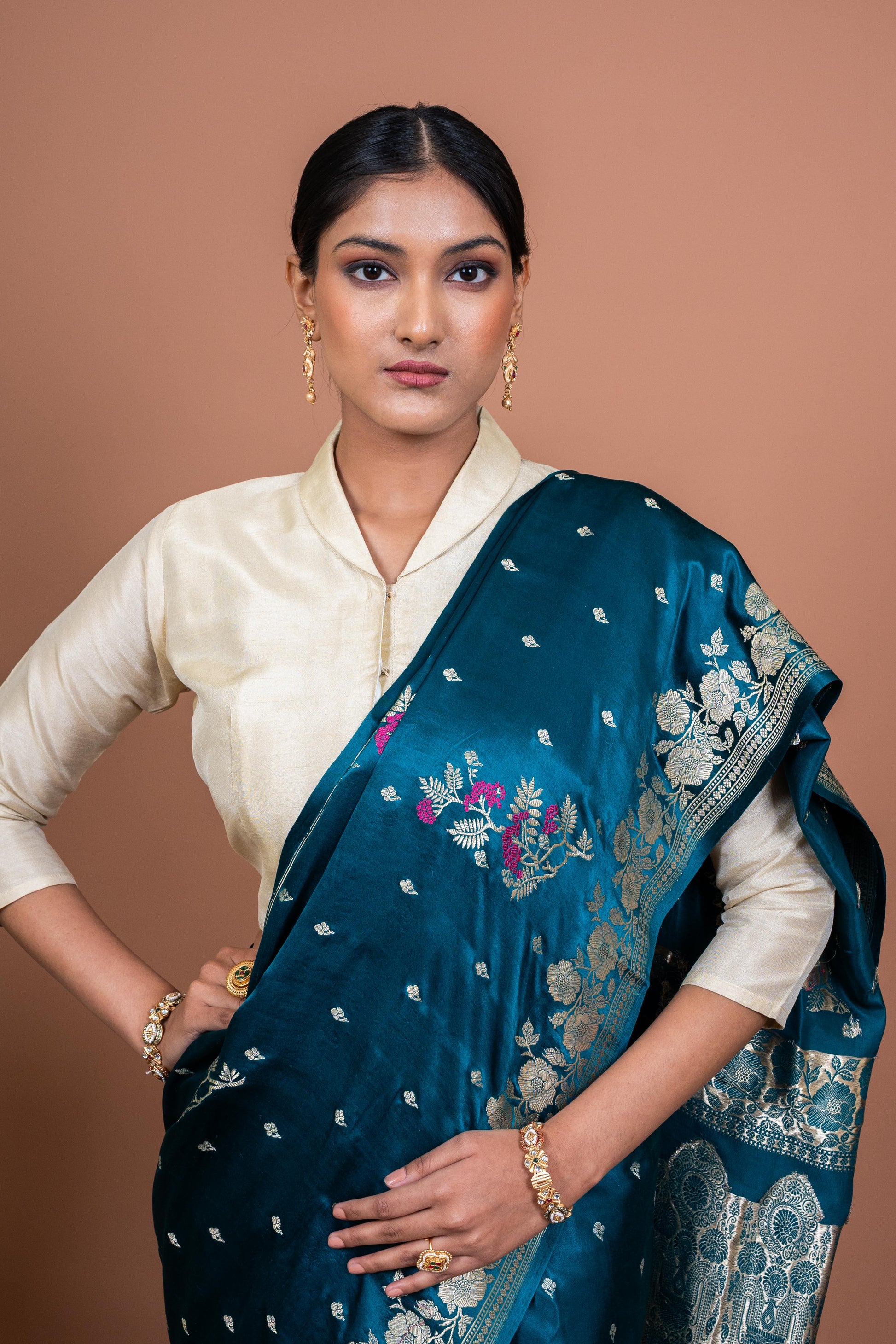 Wear the Nirvana Handwoven Banaras Saree, and embrace a legacy of tranquility, elegance, and heritage woven into every thread.
