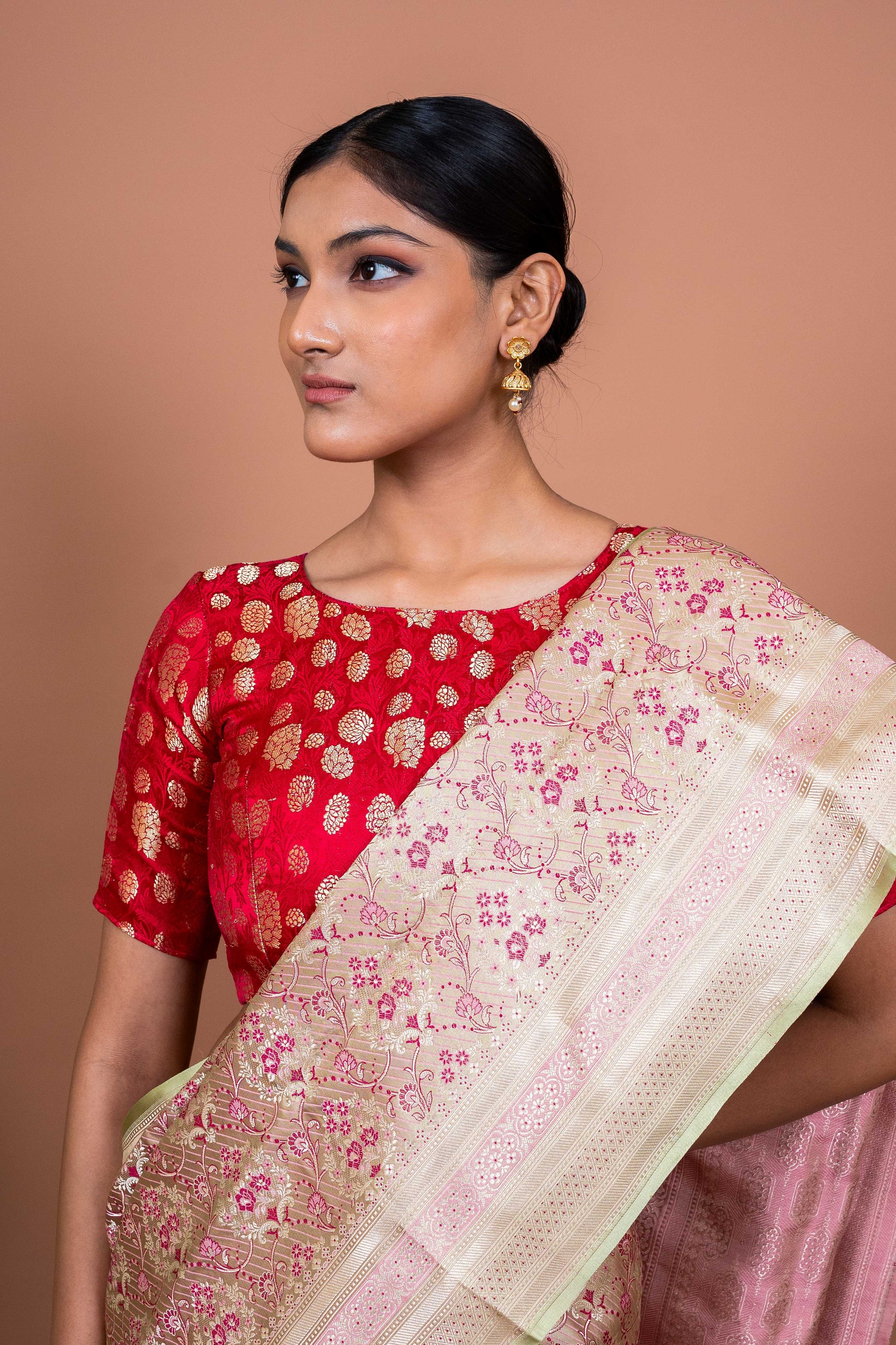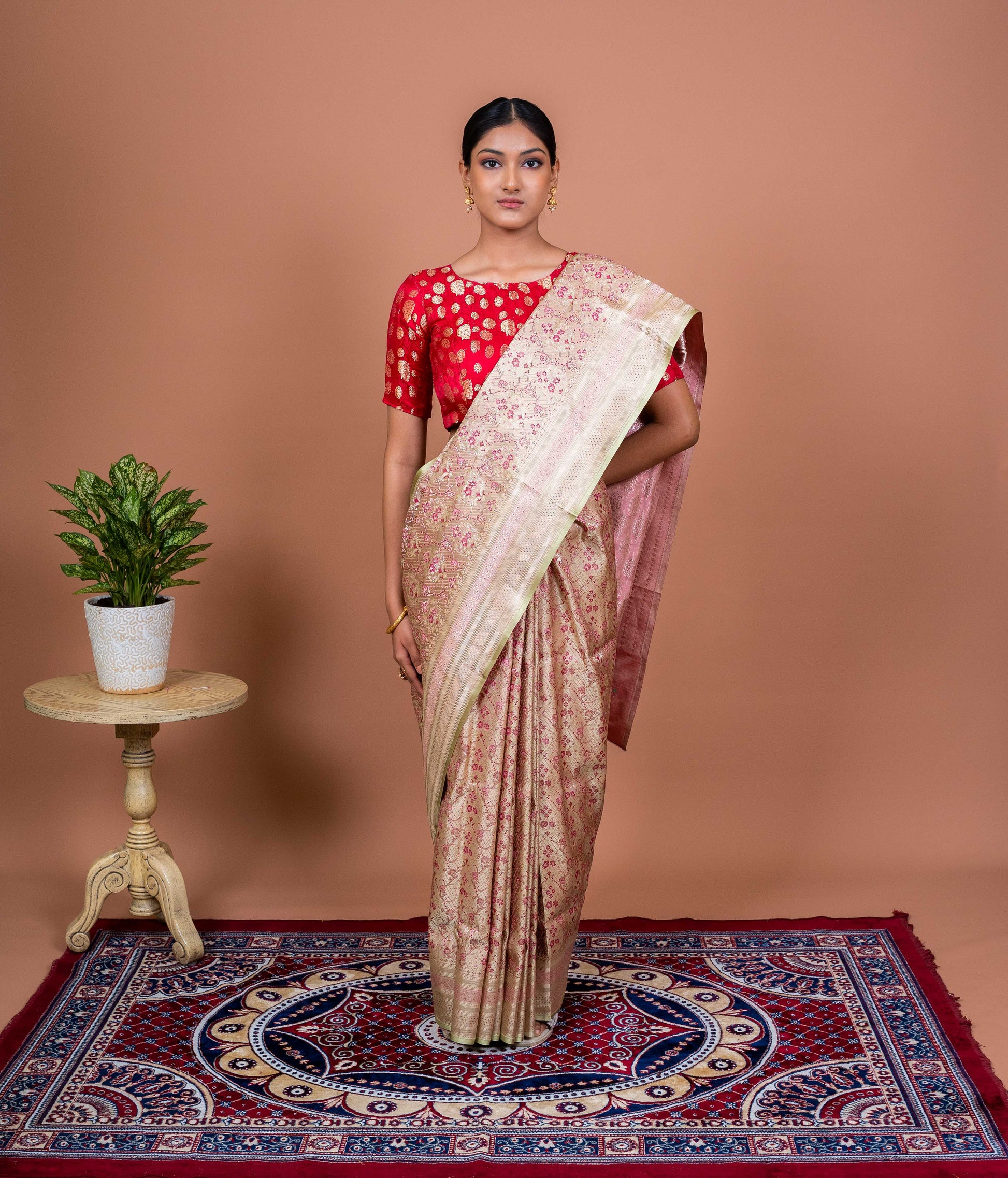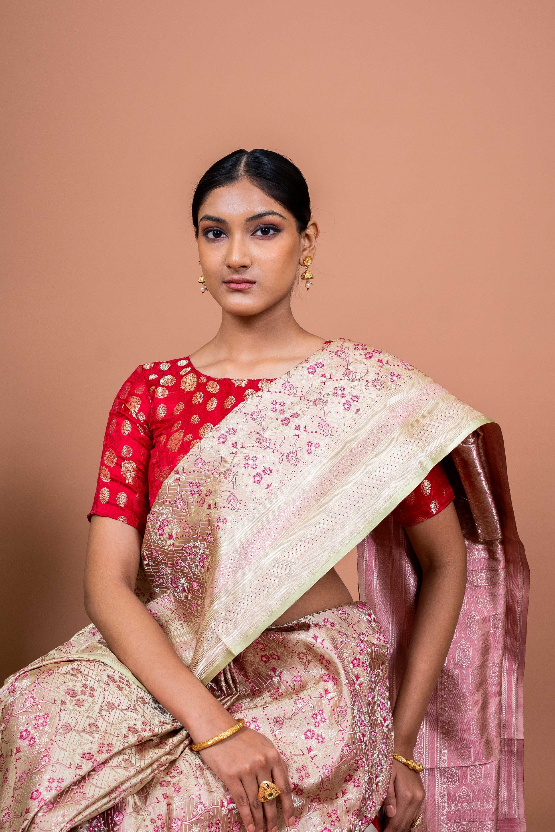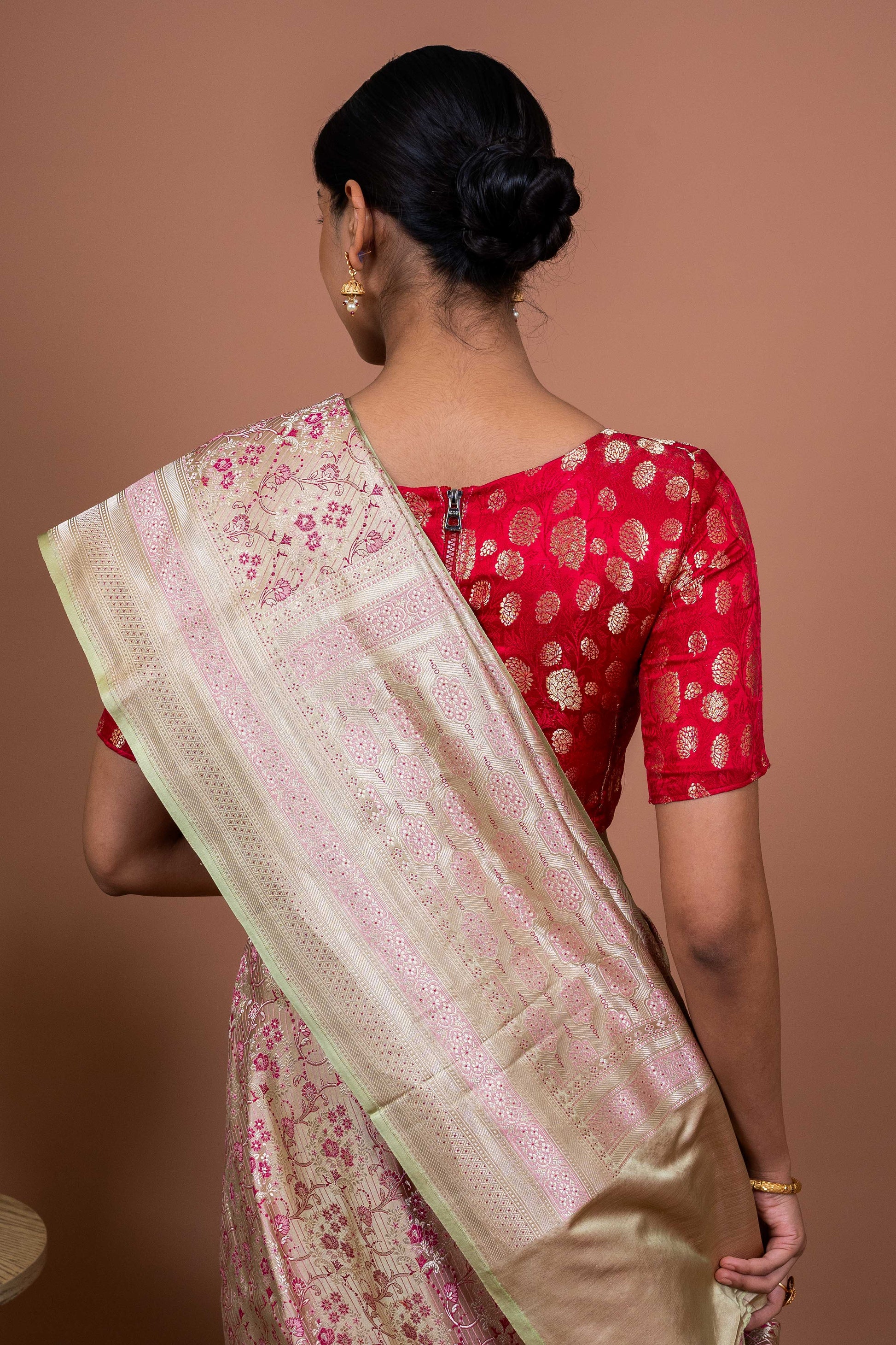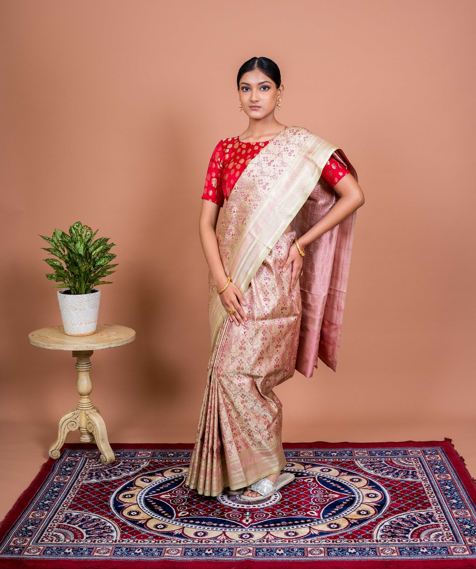 Wrap yourself in the subtle grace of the Noor Handwoven Banaras Saree, and allow it to illuminate your presence in a quiet, understated way that is uniquely your own.