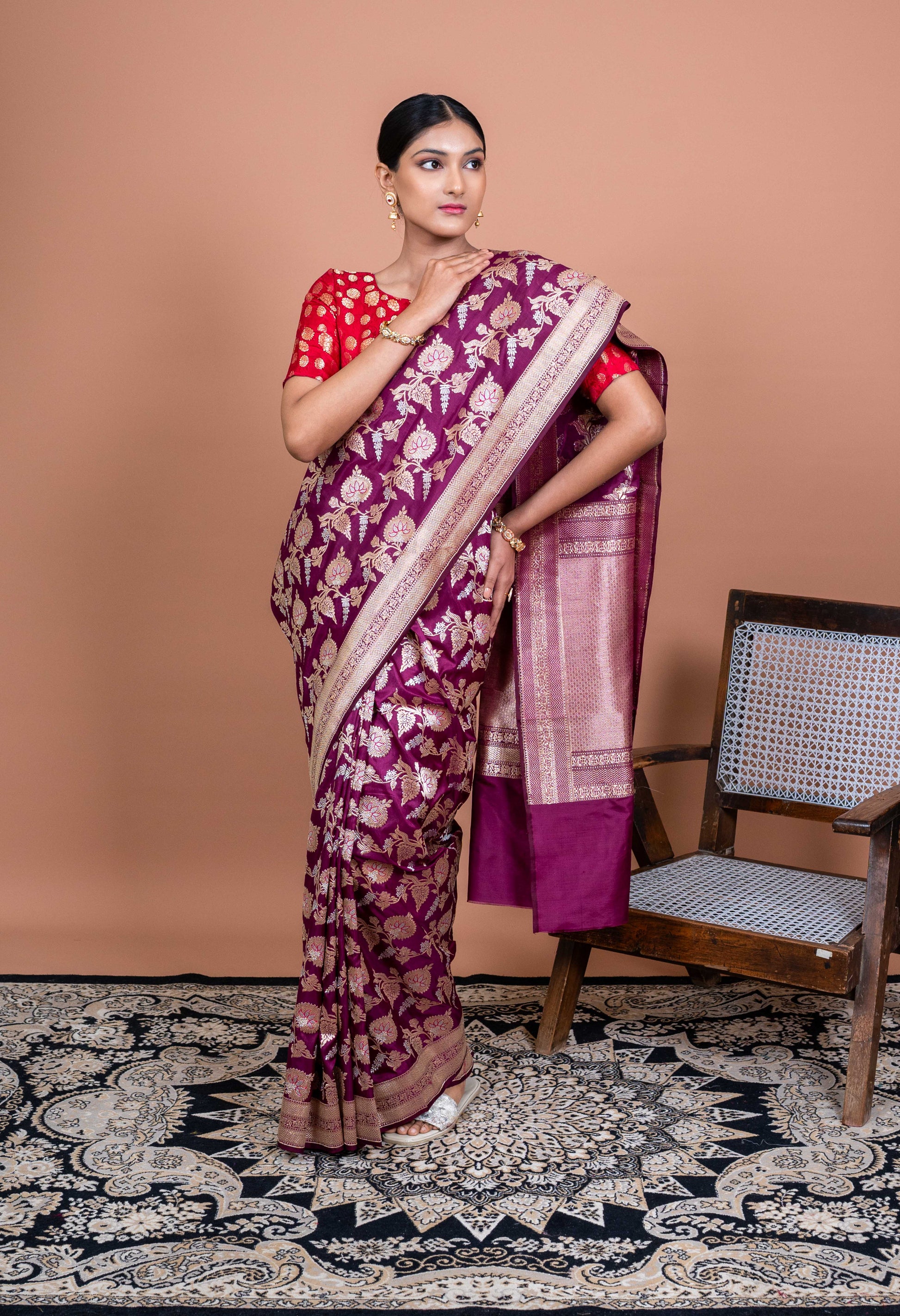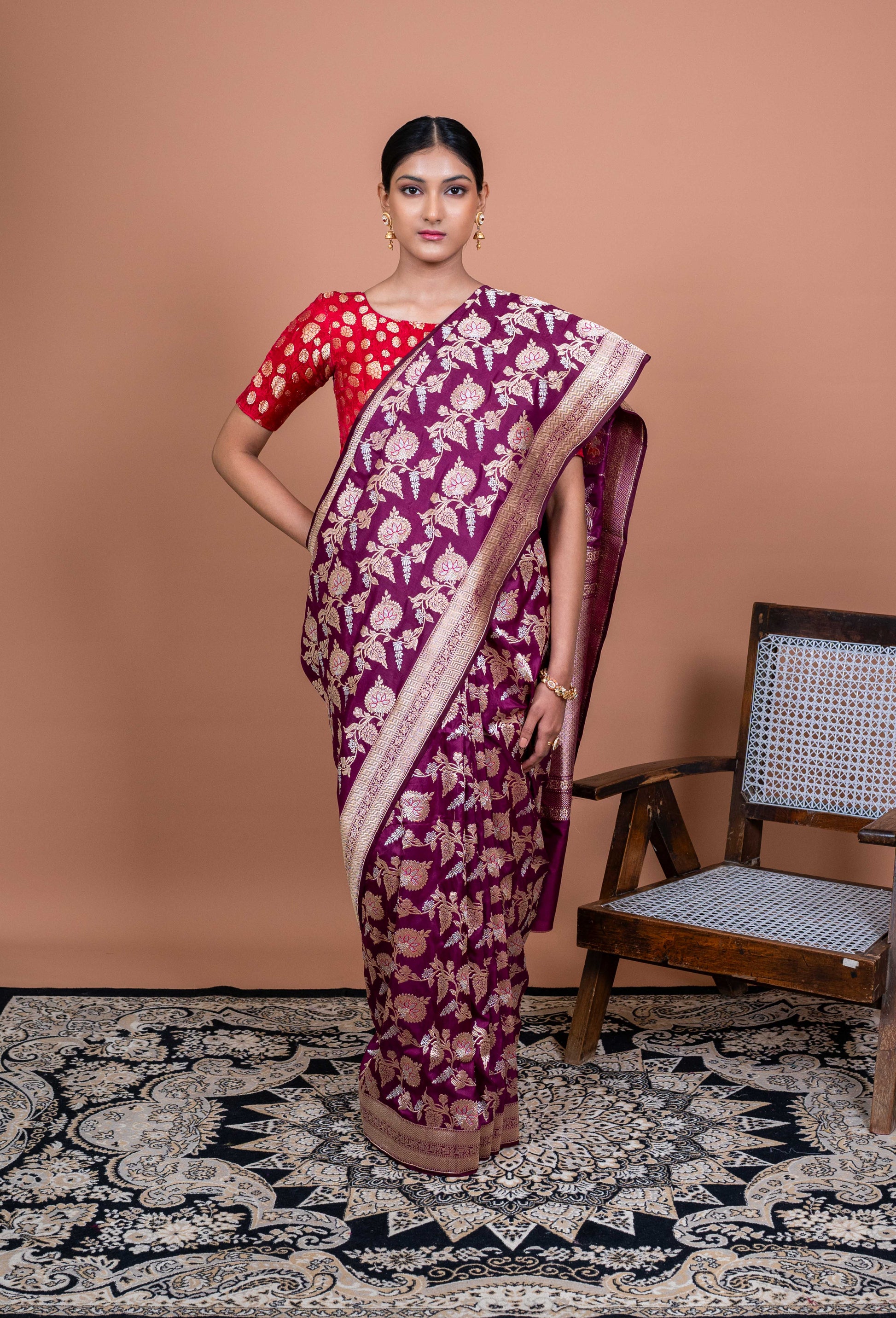 Experience the timeless elegance and intricate craftsmanship of our Paan Jaal Handwoven Banaras Saree. Expertly crafted with traditional techniques, this saree features a stunning paan jaal design that is both delicate and refined. Elevate your wardrobe with this luxurious and unique piece, perfect for any special occasion.