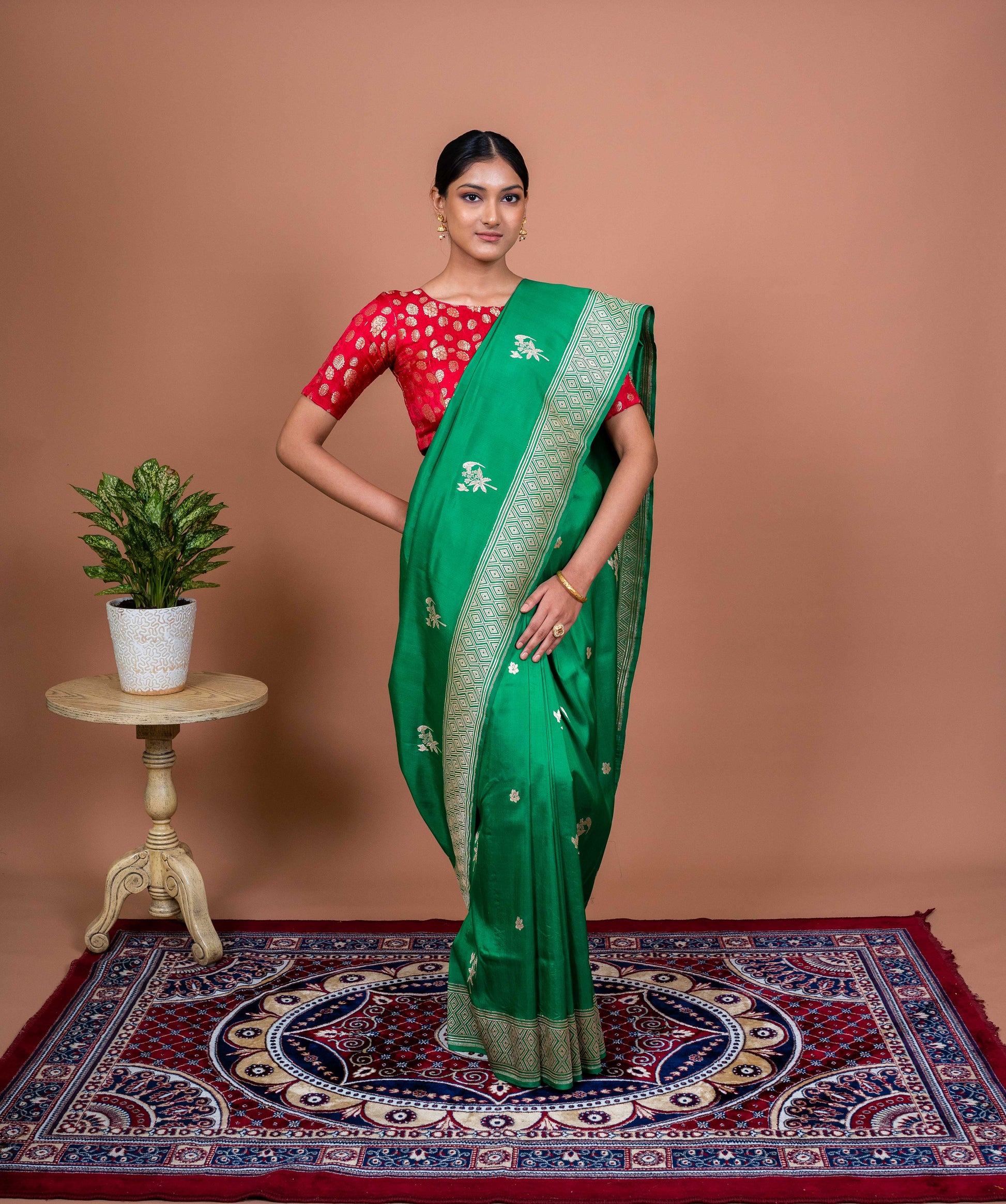 Step into a world of intricate weaves and heritage with the Parrot Booti Handwoven Banarasi Saree—a drape that’s as exquisite as the stories it carries.