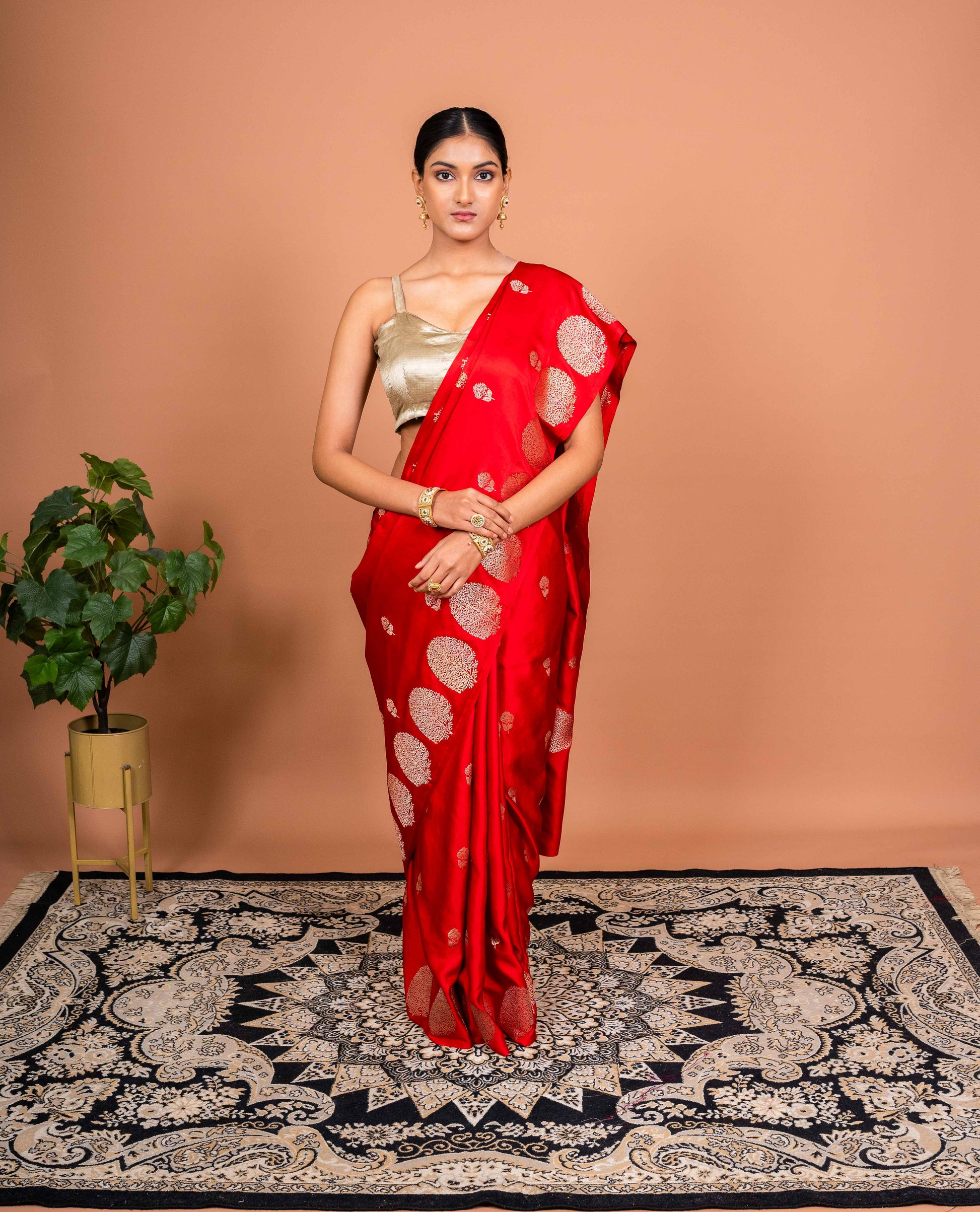 Rooted in tradition, yet timeless in elegance—the Peepal Handwoven Banarasi Silk Saree in a deep red hue carries the essence of heritage and grace. Inspired by the sacred Peepal tree, this saree embodies strength, resilience, and beauty. Woven with intricate patterns and pure silk, it’s made for the woman who appreciates tradition but wears it with her own unique flair.