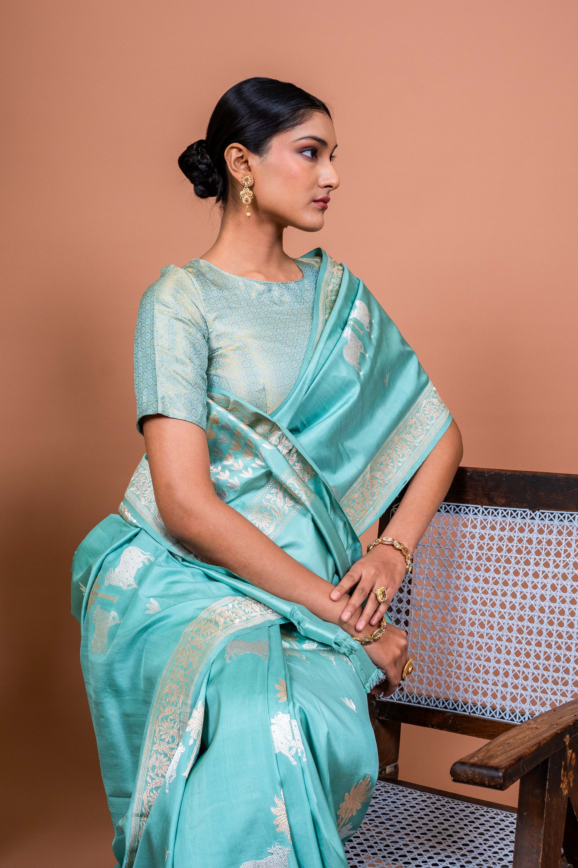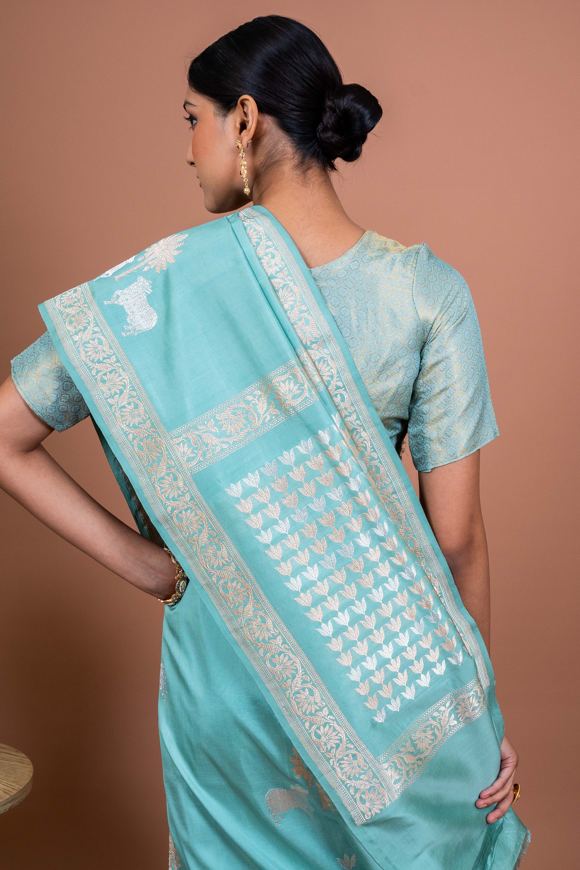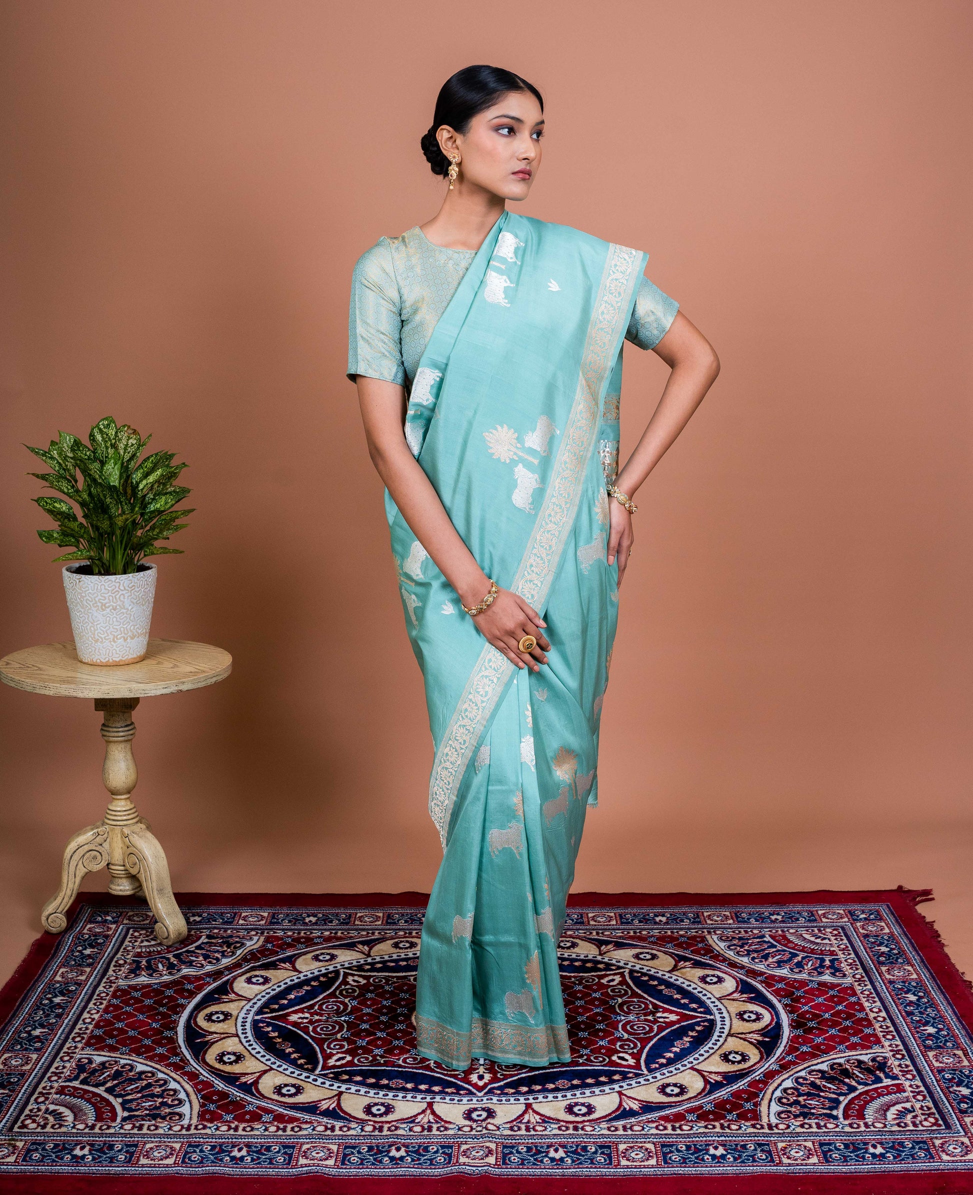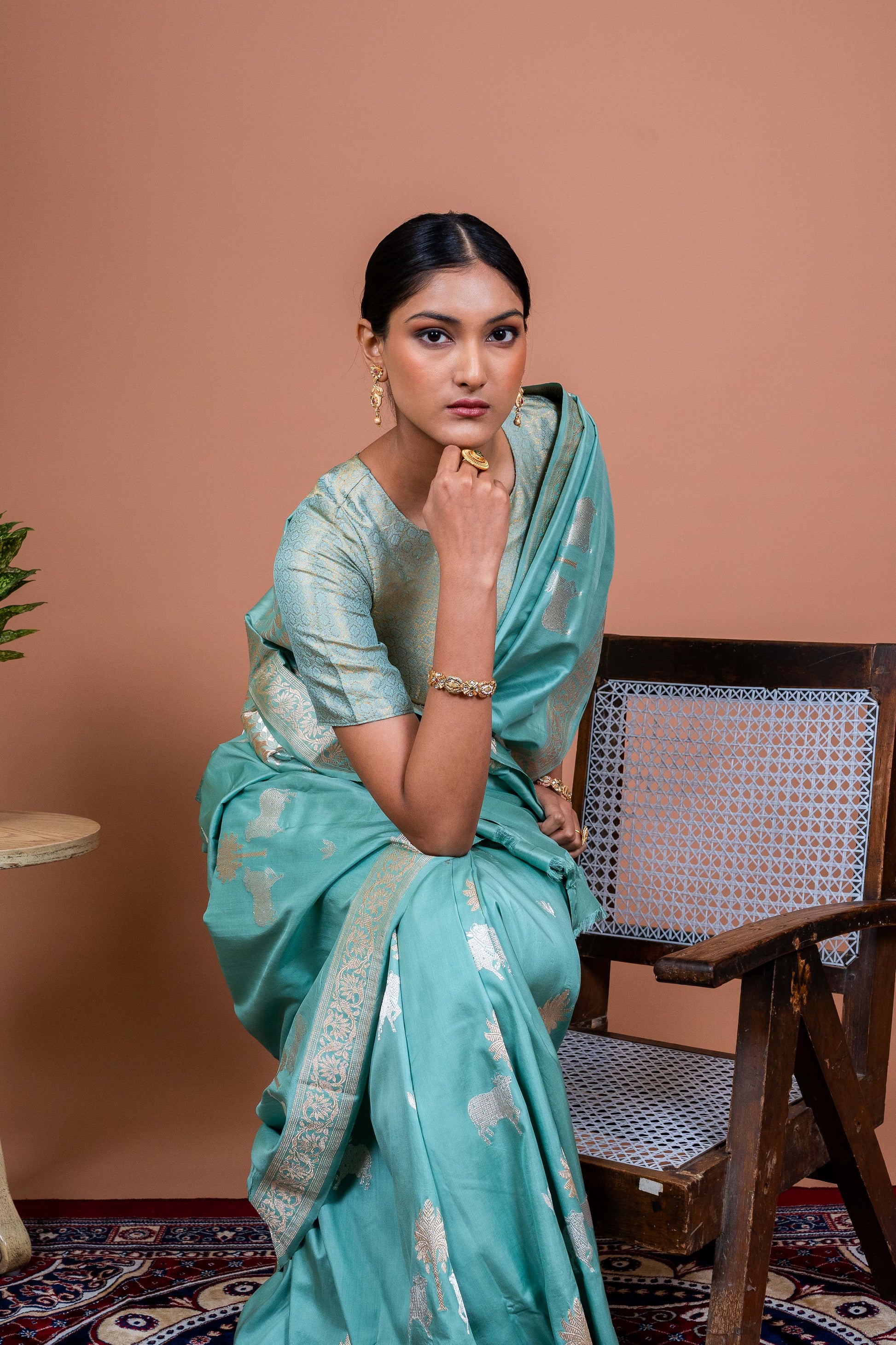 The Pichhwai Handwoven Banarasi Saree is a canvas of tradition, painted in the serene depths of blue. Inspired by the timeless art of Pichhwai paintings, this saree is a masterpiece that blends heritage with elegance.