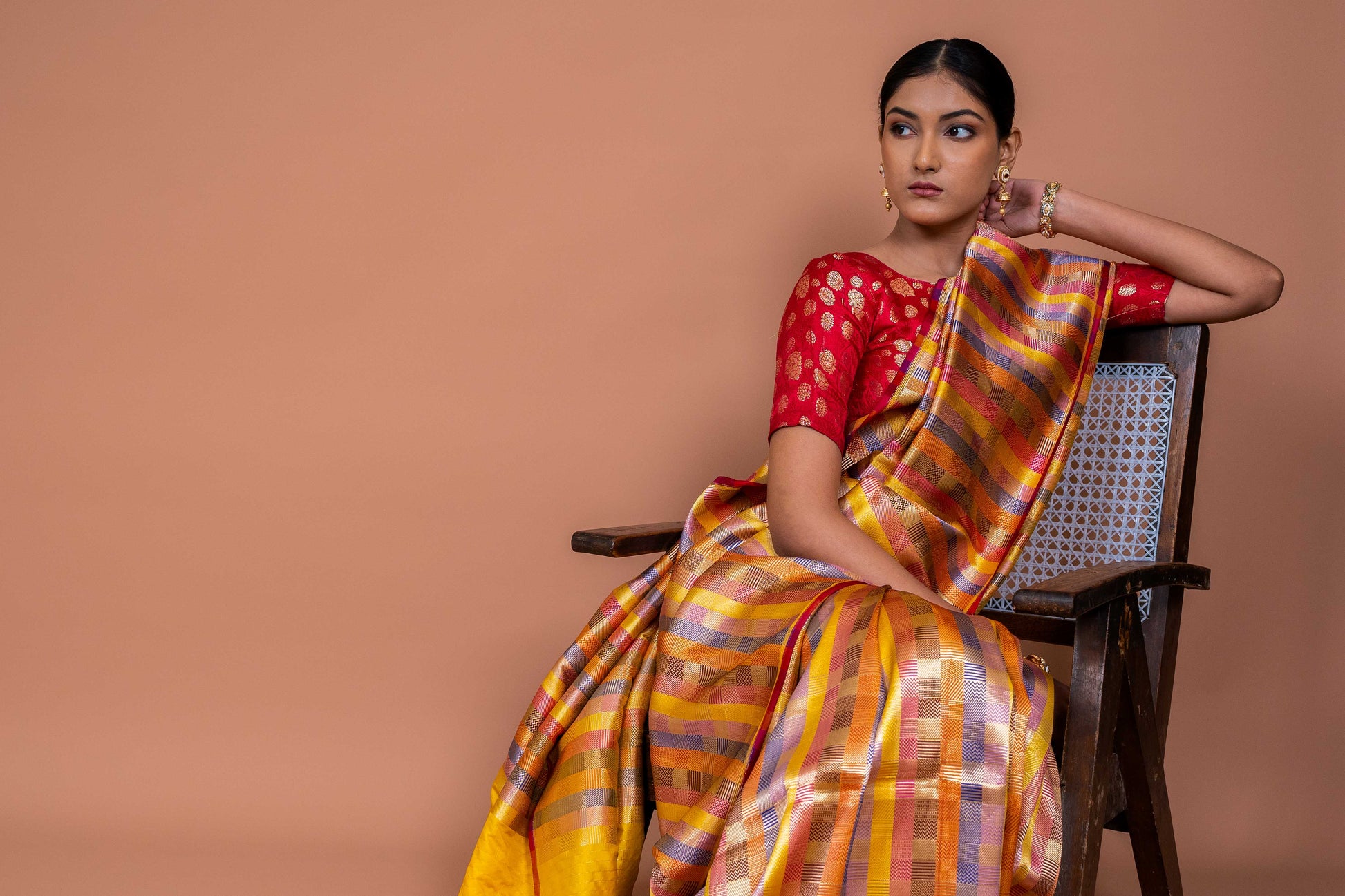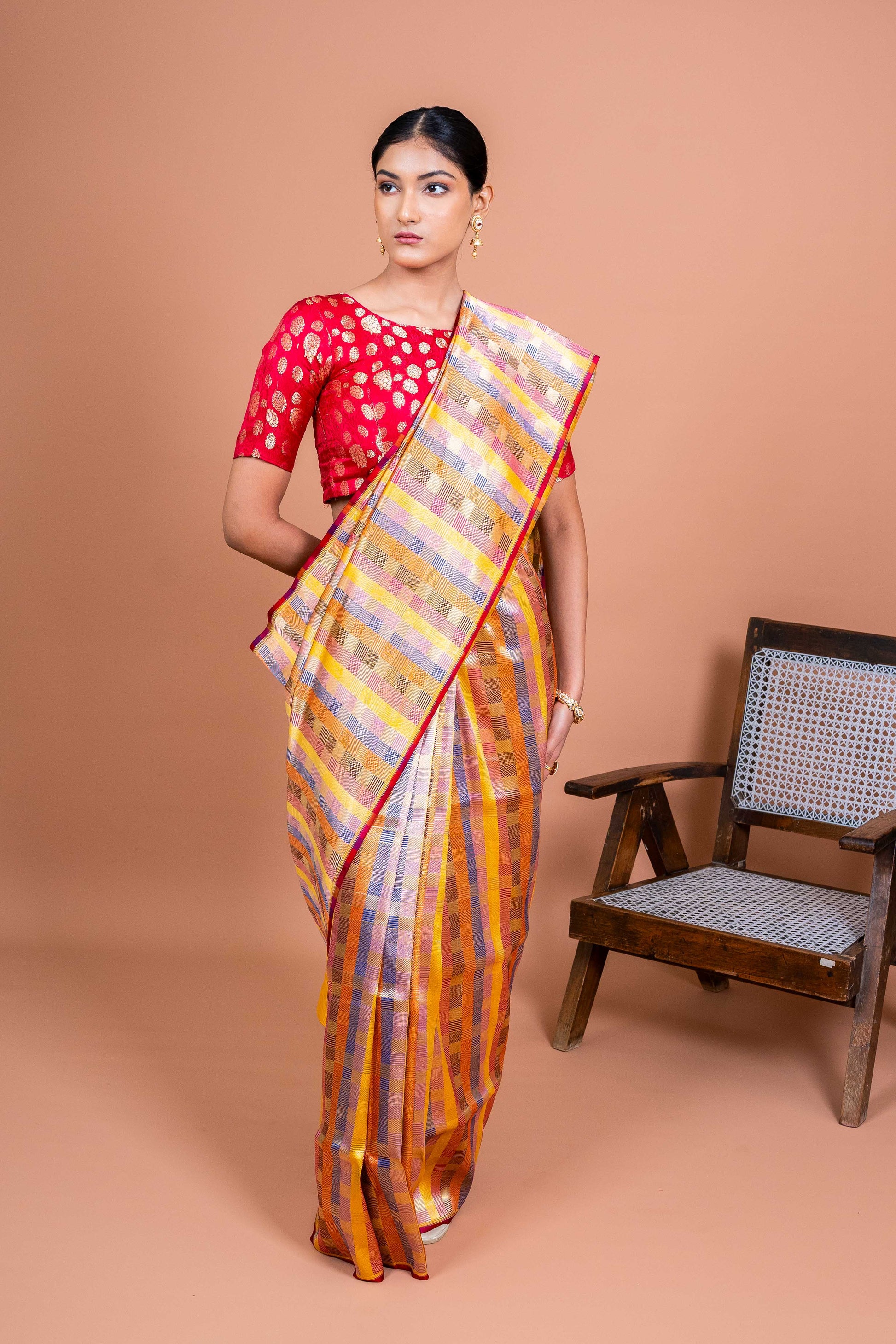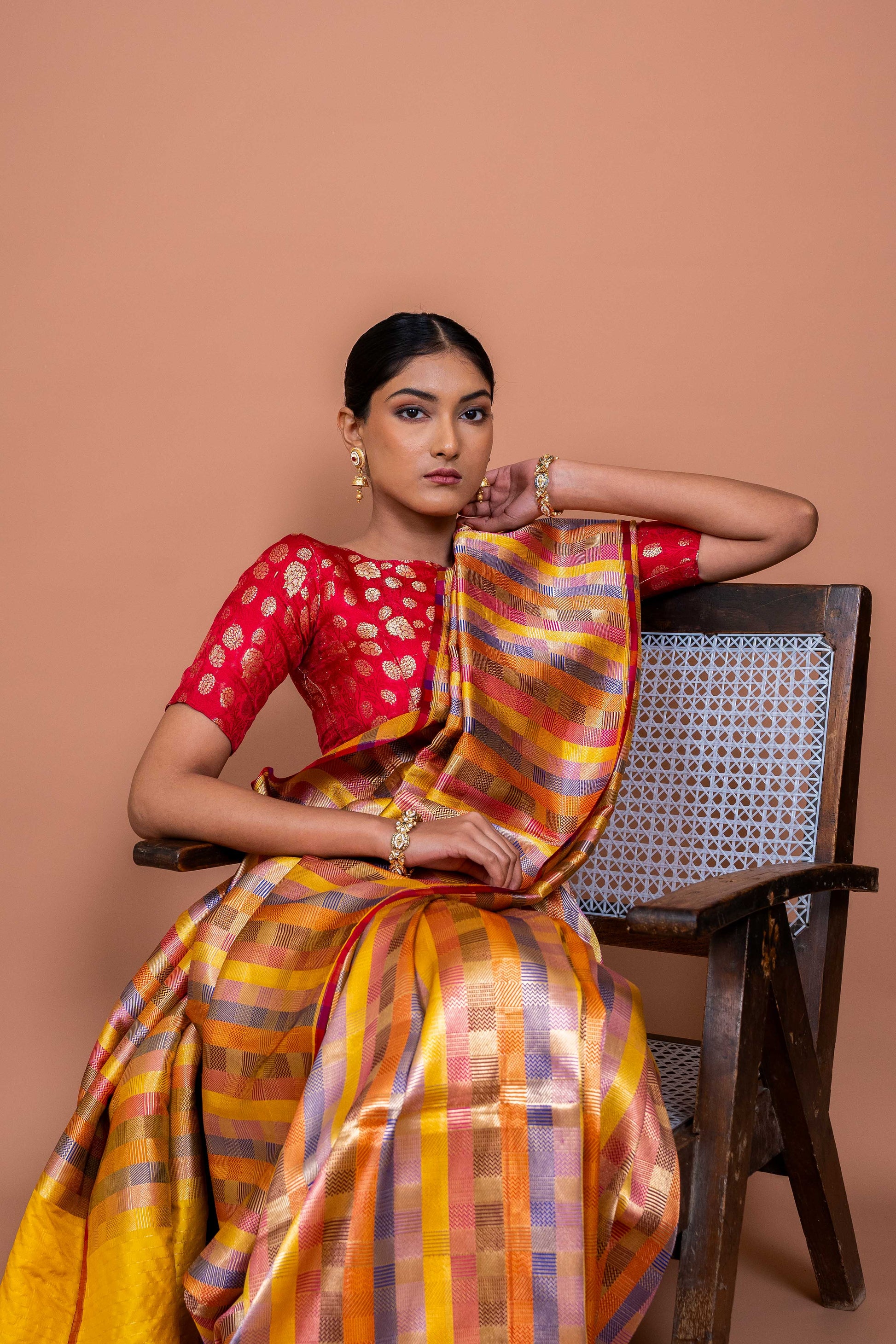 Embrace the vibrancy of life and step into the spotlight with the Multicolor Rangeen Handwoven Banaras Saree, where tradition meets contemporary elegance in every thread.