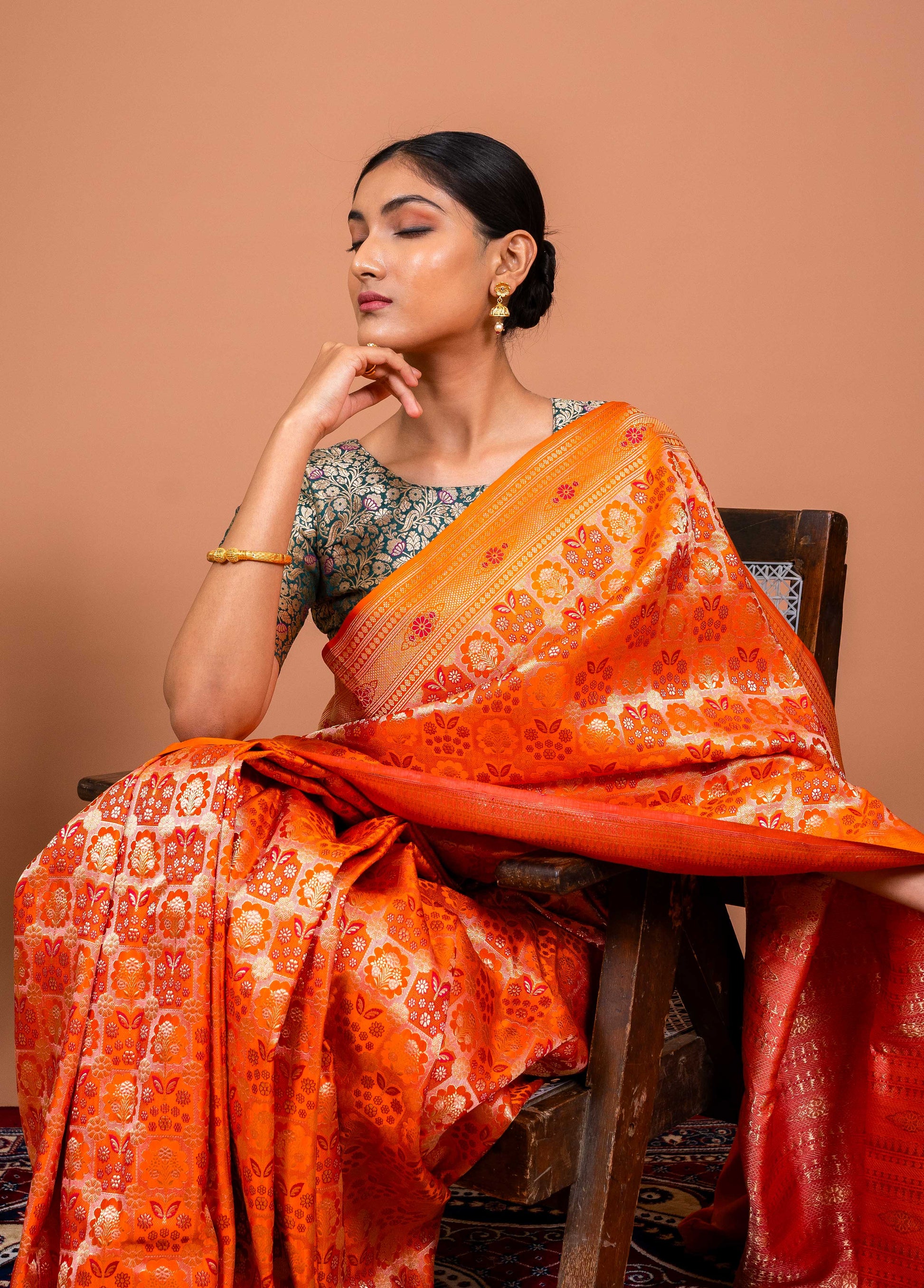- A Glow Like Sunrise – The fiery orange hue captures the warmth of dawn, exuding confidence and grace in every fold.