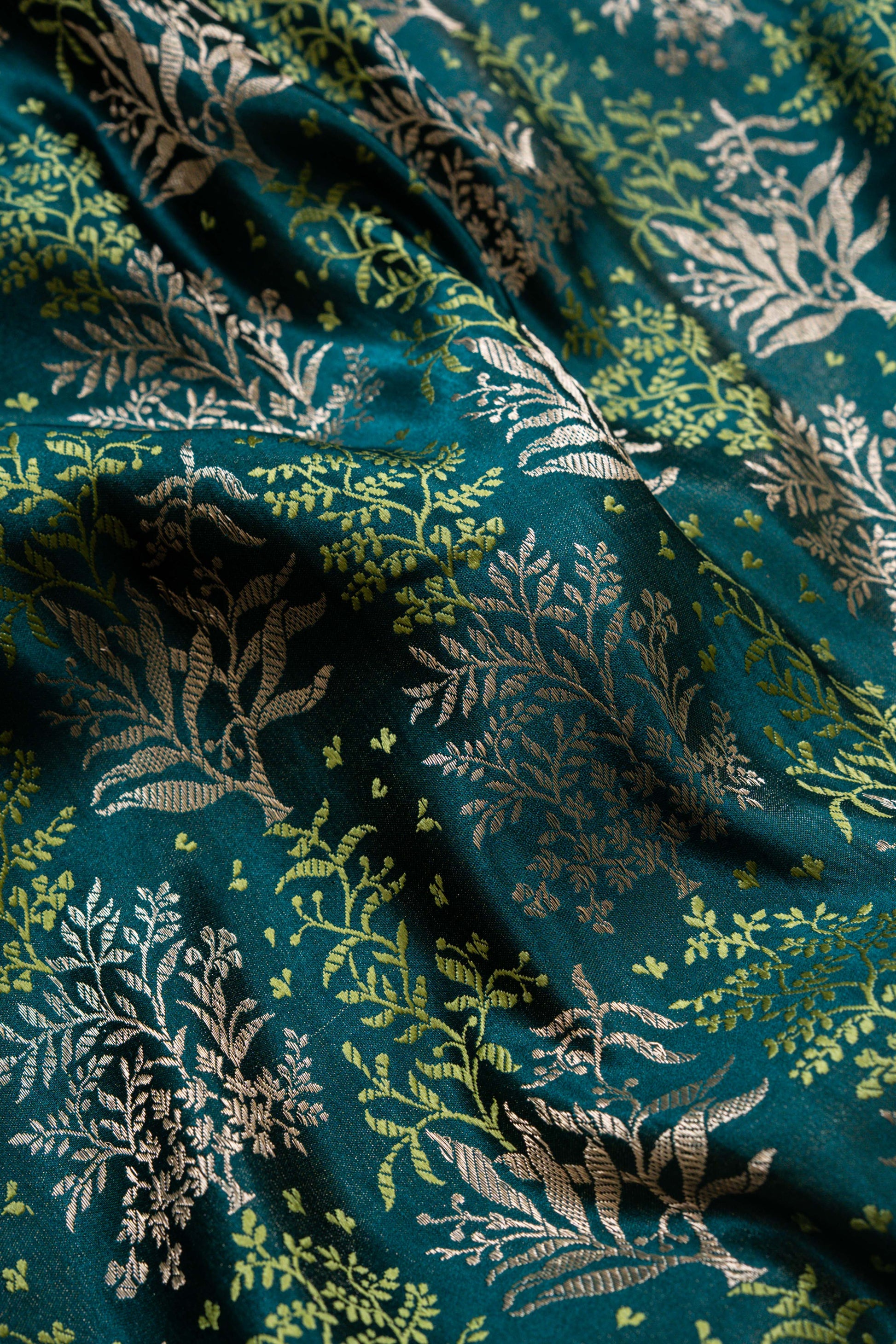 The Vrinda Handwoven Banaras Saree in lush green is a true embodiment of nature’s grace and the timeless art of Banarasi weaving. Inspired by the serene beauty of lush gardens and rolling landscapes, this saree is designed for the woman who is rooted in tradition but embraces the elegance of modern sophistication.